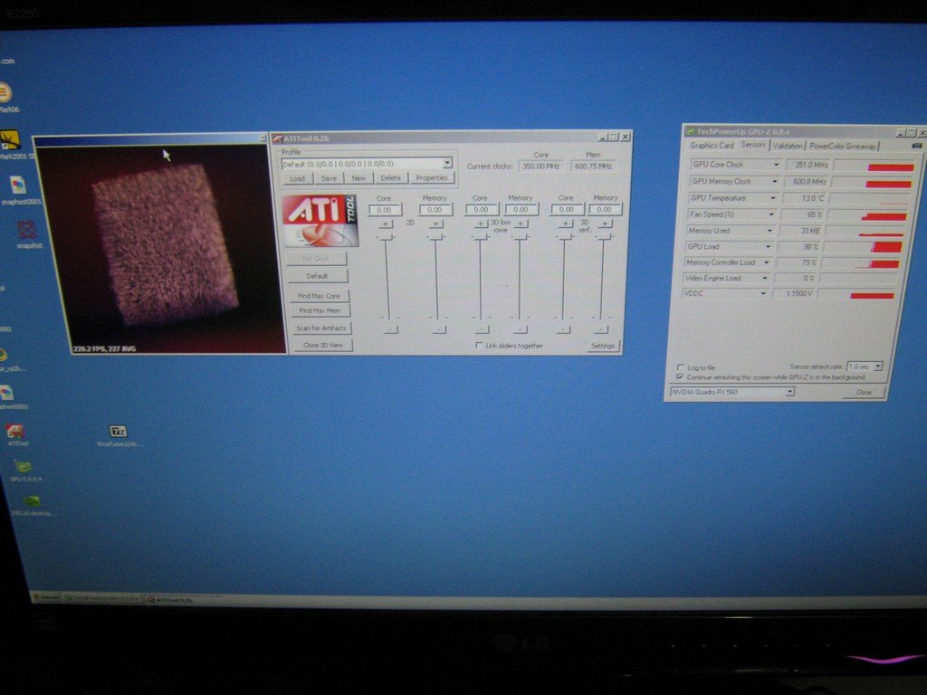 Em um teste rápido usando o “cubo peludo” do ATI Tools, que basicamente era o “Furmark” que Adão usava para estressar VGAs, o resultado foi altamente satisfatório! Vejam isso: