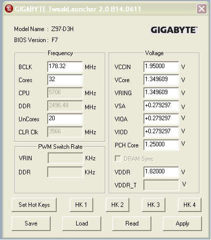 Feitas as apresentações do hardware vamos ao software que é o GIGABYTE TweakLauncher. Ele permite alterar rapidamente praticamente todas as tensões relevantes para overclock,