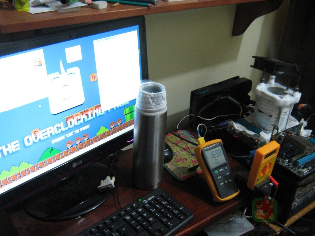 Em suma, o procedimento para esses CPUs é bem simples bastando isolar a mobo com bastante carinho, gelar o máximo que conseguir (cerca de -190ºC no LN2) e sentar a bota! 😀