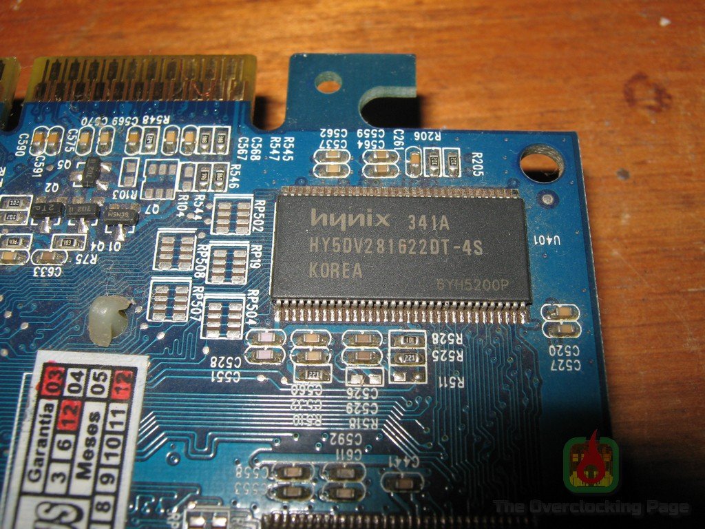 Esse exemplar veio equipado com memórias Hynix 4ns, algo que a princípio me pareceu promissor especialmente se considerarmos que essas VGAs low-end são fortemente limitadas pela banda de memória e que geralmente elas vem equipadas com chips de 5ns ou mais por motivo de corte de custos.