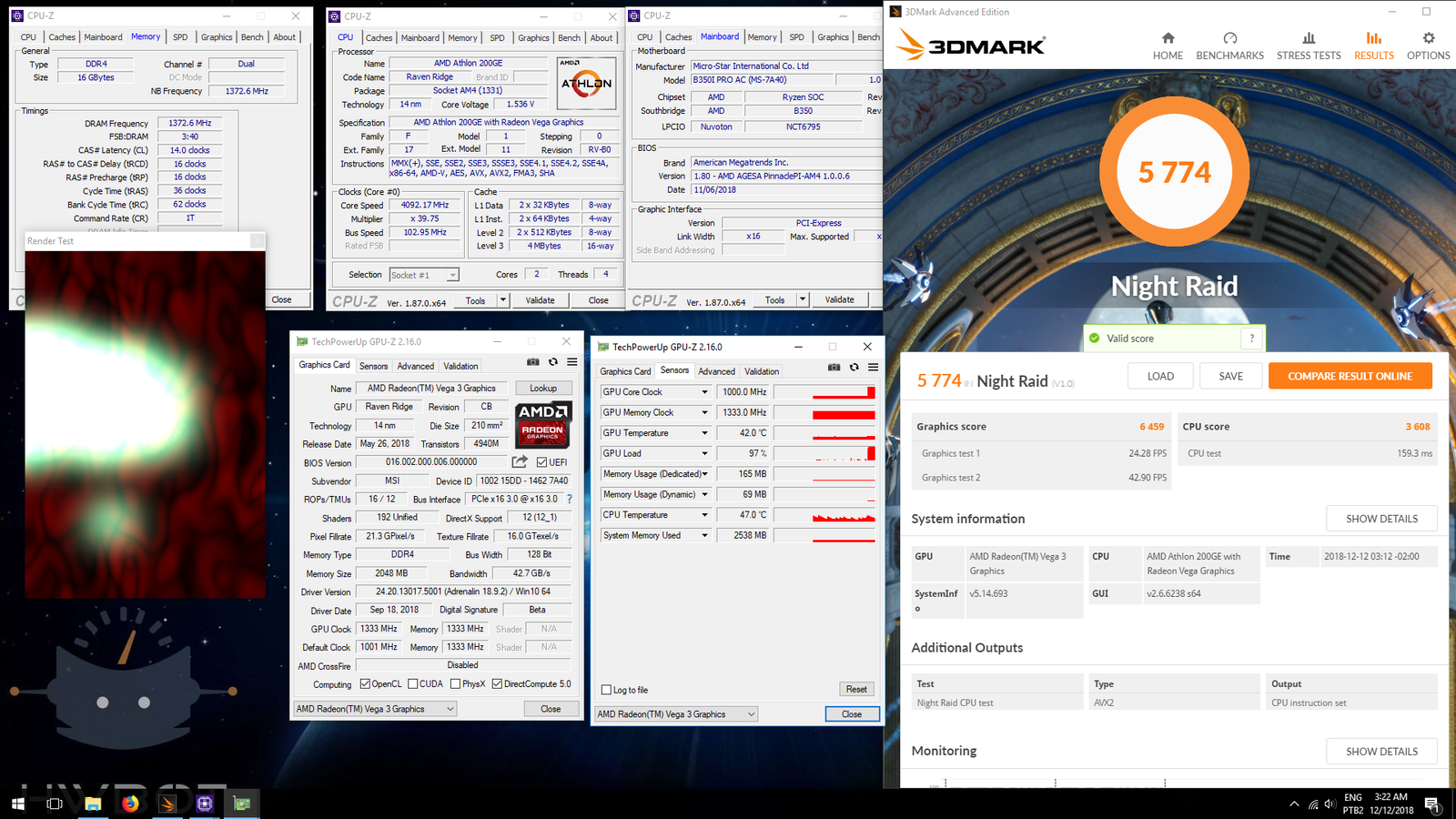 Apenas para constar, também rodei o 3DMark Night Raid, que é um benchmark 3D que usa a API DX12 e é voltada aos vídeos integrados. O resultado aqui não foi nada estelar porém dentro do esperado para um GPU Vega com humildes 3 CUs ativados e trabalhando a apenas 1GHz sendo que caso o ajuste de overclock do GPU e da RAM fossem liberados, o resultado poderia ter sido muito melhor!