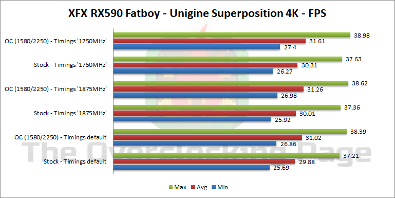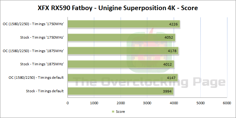 Em relação aos resultados obtidos, para rodar esses testes tanto em “Stock” quanto “OC” usei o GPU com em 1580MHz, PL +50% e fan @ 100% com o intuito de manter a frequência de operação do mesmo sempre constante, conforme mostrei no review da placa, e variei apenas o clock da memória, sendo 2000MHz em stock e 2250MHz em OC.