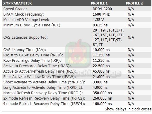 Como já era de se esperar, o Thaiphoon Burner identificou esses chips como Micron E-Die, sendo esses chips fabricados em 16nm. Na galeria abaixo é possível verificar todo o report e os timings XMP em nanosegundos, o que é uma informação valiosa na hora de usar a Ryzen DRAM Calculator.