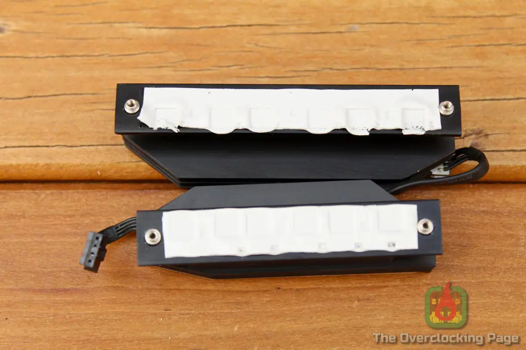 Para verificar a temperatura dos circuitos de alimentação, foi instalado um termopar com um thermal pad grudento na parte de trás da placa, logo atrás das powerstages das seis fases localizadas na lateral da placa, próximas ao espelho traseiro, lembrando que o delta entre a temperatura medida pelo termopar e a do mosfet não costuma ser maior do que 5ºC. O sensor #1 se refere ao termopar da foto na galeria abaixo.