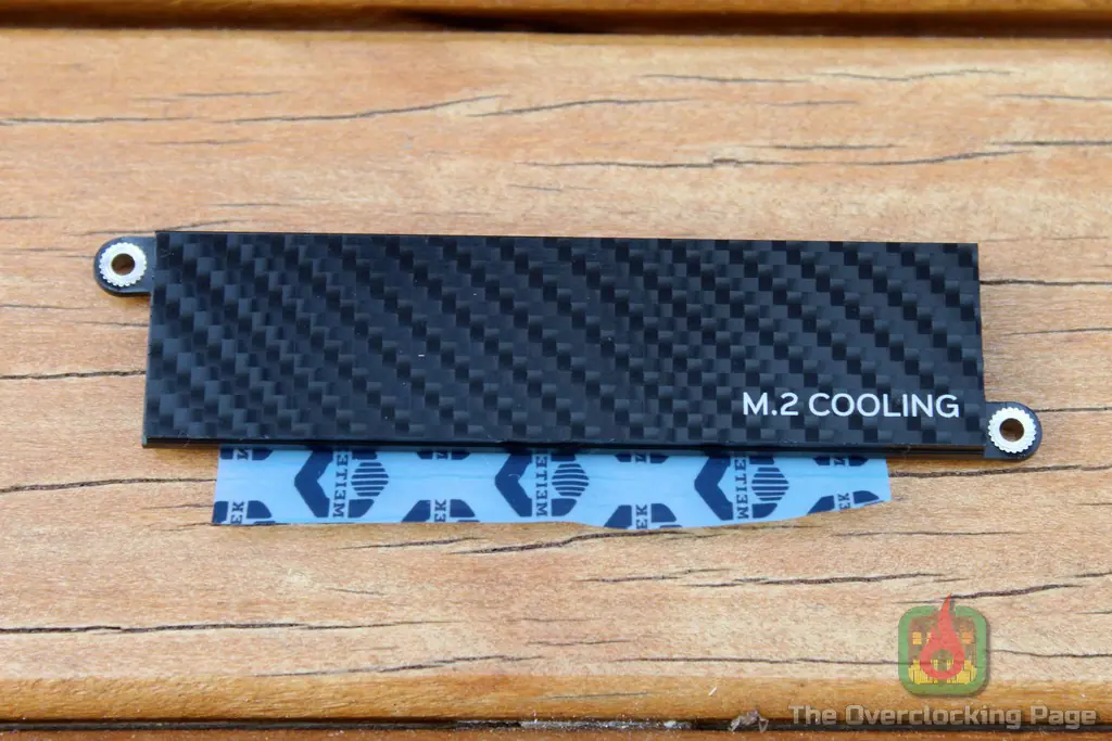 A Biostar X570GT8 apresenta um visual até interessante, com pcb preto usando os mesmos grafismos vistos na caixa, dissipadores do VRM com led RGB (!) e detalhes imitando fibra de carbono. Também é possível ver o plástico protetor usado na interface térmica do “dissipador” M.2, que fica exposto e definitivamente não é algo lá muito bonito de se ver.
