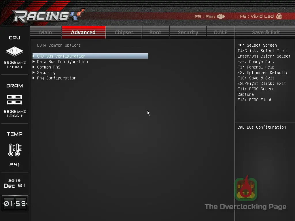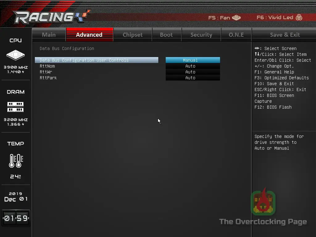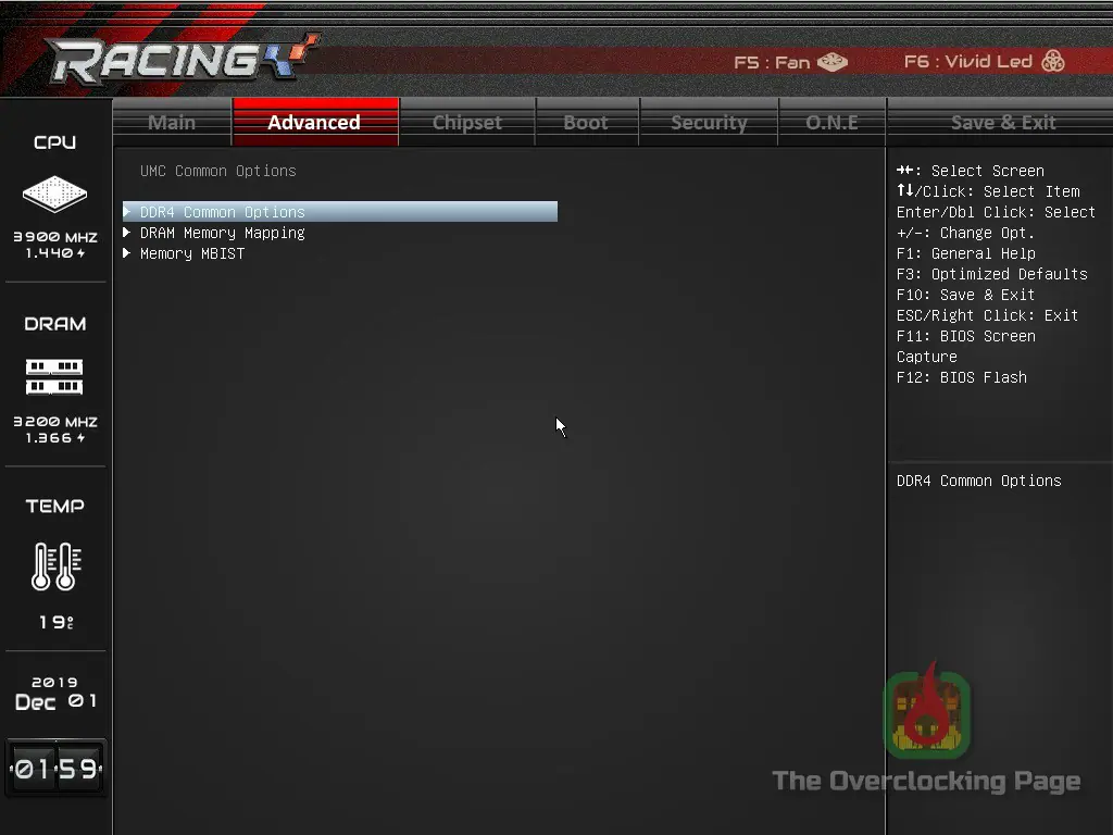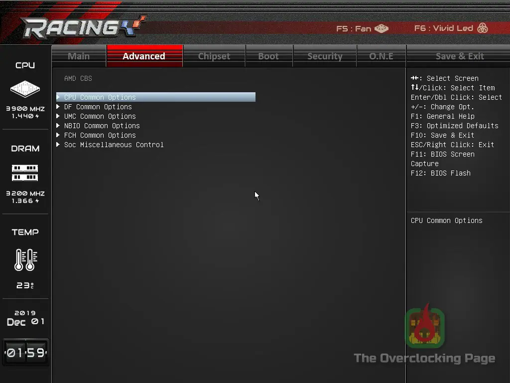 Em relação a UEFI, a interface é idêntica a aquela encontrada na X570GT8 e apresenta exatamente os mesmos menus e opções encontradas em sua sucessora, resumidademente, essa placa oferece ajustes de tensão manuais (override) para a tensão do CPU e do SOC, LLC em 6 níveis e frequência de chaveamento do VRM, podendo também ter incluído os ajustes de terminação de memória e tensão do VDDG juntamente ao menu “O.N.E”, pois do jeito que está, é necessário navegar nas opções “AMD CBS” para encontrar tais opções, conforme pode ser visto nas capturas de tela abaixo.