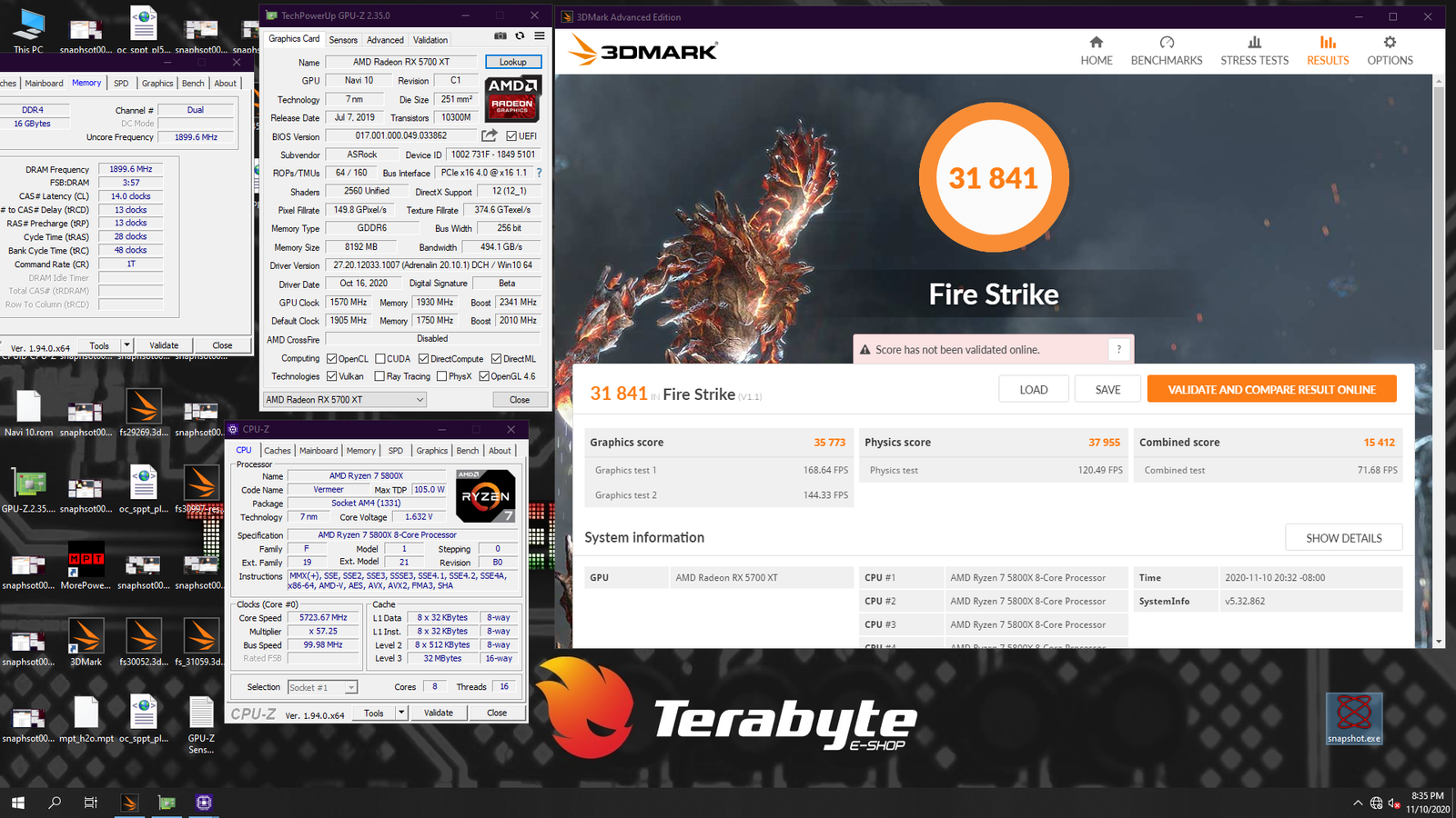 Dos resultados obtidos, foi possível obter ouro no FS/FSU/FSE com pontuações de 31841, 15870 e 8489 pontos, respectivamente, enquanto no Time Spy, foi possível chegar em quinto lugar com uma pontuação de 11452 pontos. Existe margem para melhora no FS/TS por parte das frequências do GPU e no FSE/FSU por parte da CPU, para que tenham uma ideia, foi possível completar o FSE com CPU+VGA congeladas e o resultado obtido foi um pouco acima dos 16000 pontos, que infelizmente não foi possível salvar por conta da máquina ter travado antes disso e no FS, uma pontuação na casa dos 33000 pontos seria viável para esse mesmo hardware.