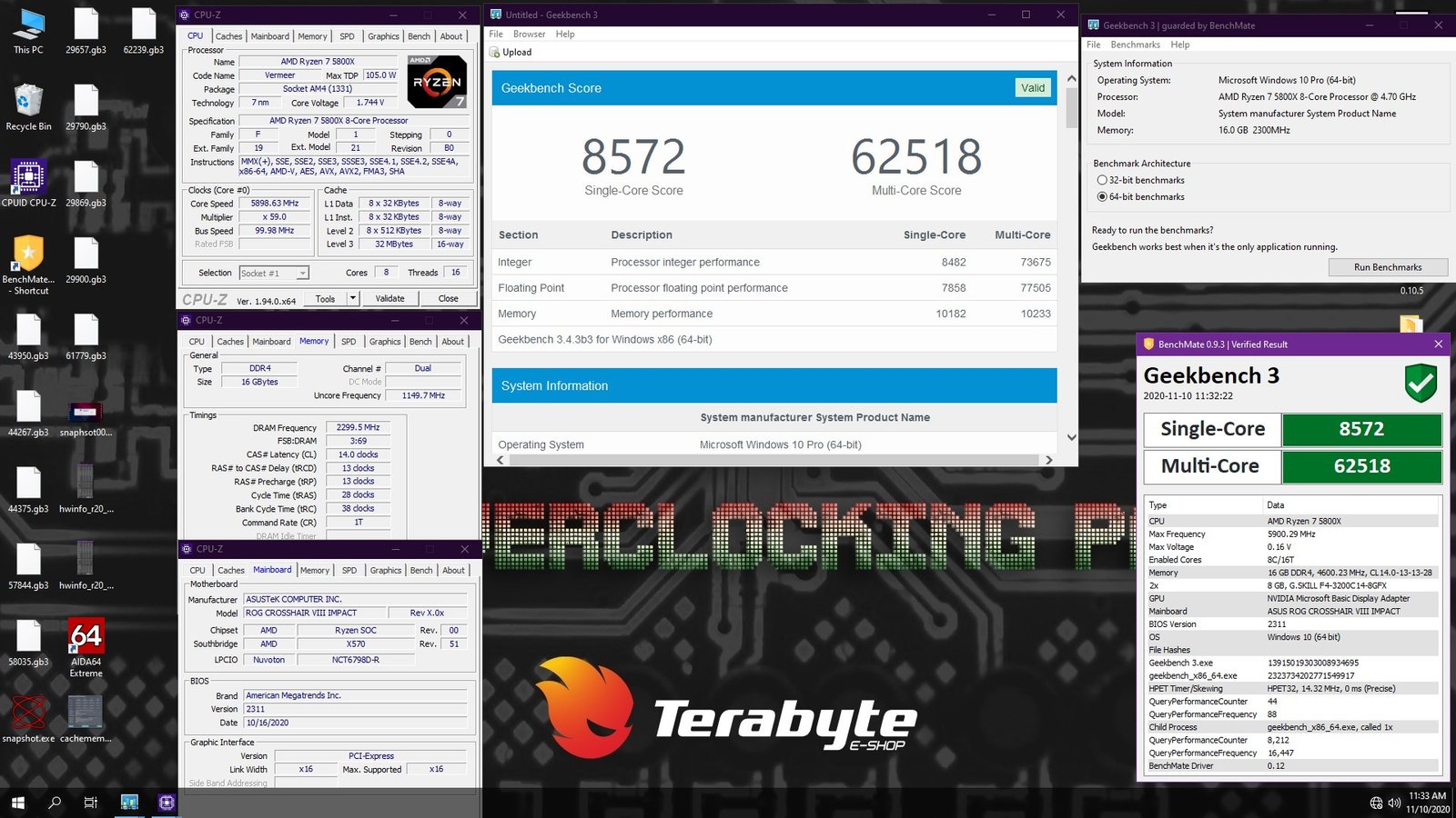 - No final das contas, o limite do Ryzen 7 5800X acabou sendo aquele dos testes preliminares, não escalando acima dos 5925MHz, de forma que apenas foi possível melhorar o resultado no Geekbench 3 completando o teste com frequência de 5900MHz 1.73V. No que diz respeito ao CB/CBB, se manteve os -160?°C/-140?°C com FCLK @ 1900MHz não apresentando diferença mesmo com FCLK @ 1600MHz.