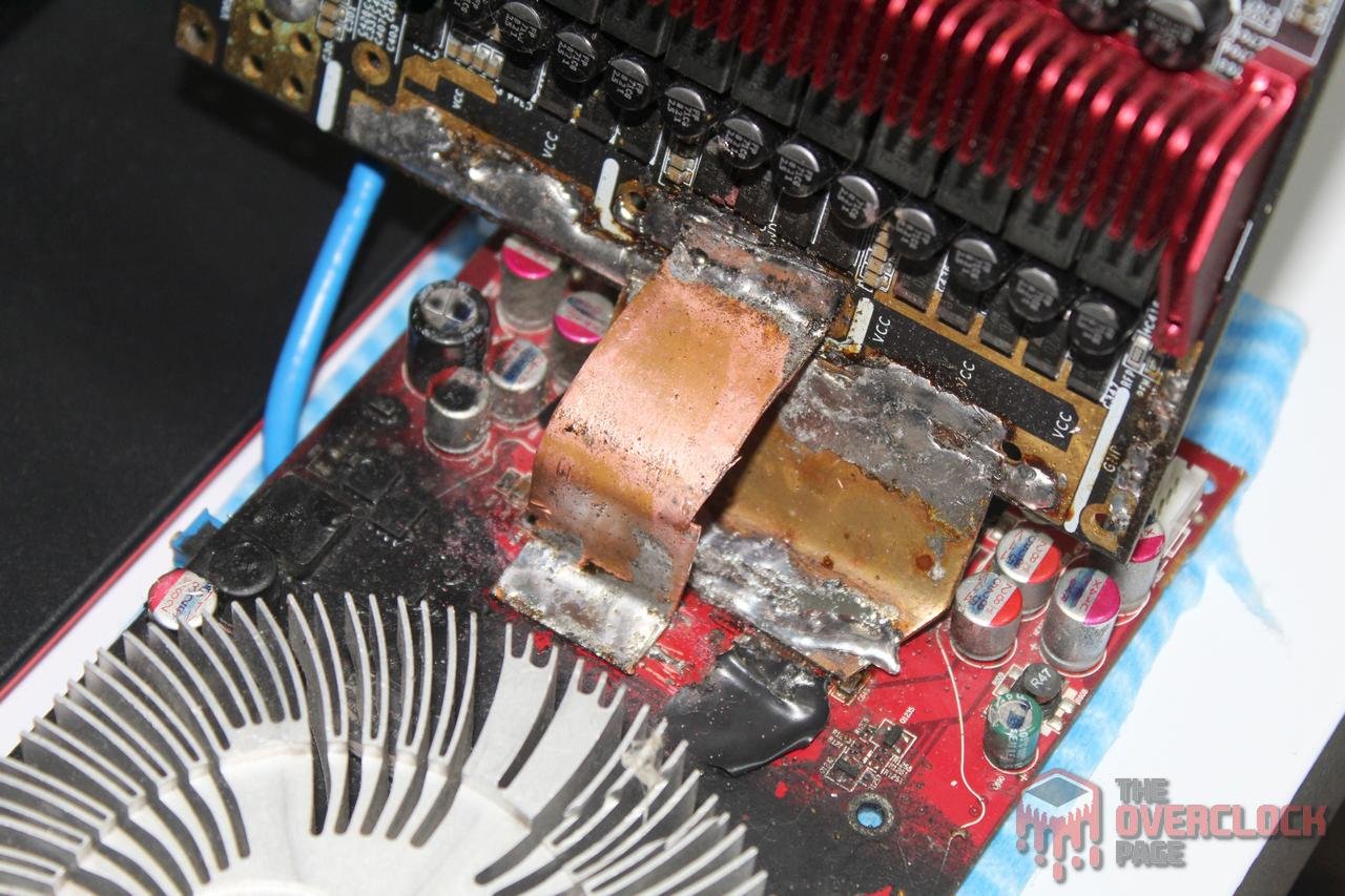 Já nas lives dos dias 20/3 e 22/3, a brincadeira mudou de foco e foi para os benchmarks 3D onde a vítima da vez foi a boa e velha Radeon HD4850 “Zumbi”, sim, a mesma usada nessa série de artigos aqui na página, porém, apesar de ser a mesma placa, foram feitas algumas melhorias na instalação do EPOWER, que foi re-soldado utilizando chapas de cobre de 0,8 mm, o que ao menos em teoria, deve garantir que a queda de tensão em load por conta da conexão seja bem minimizada.