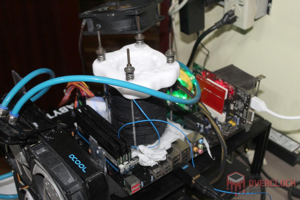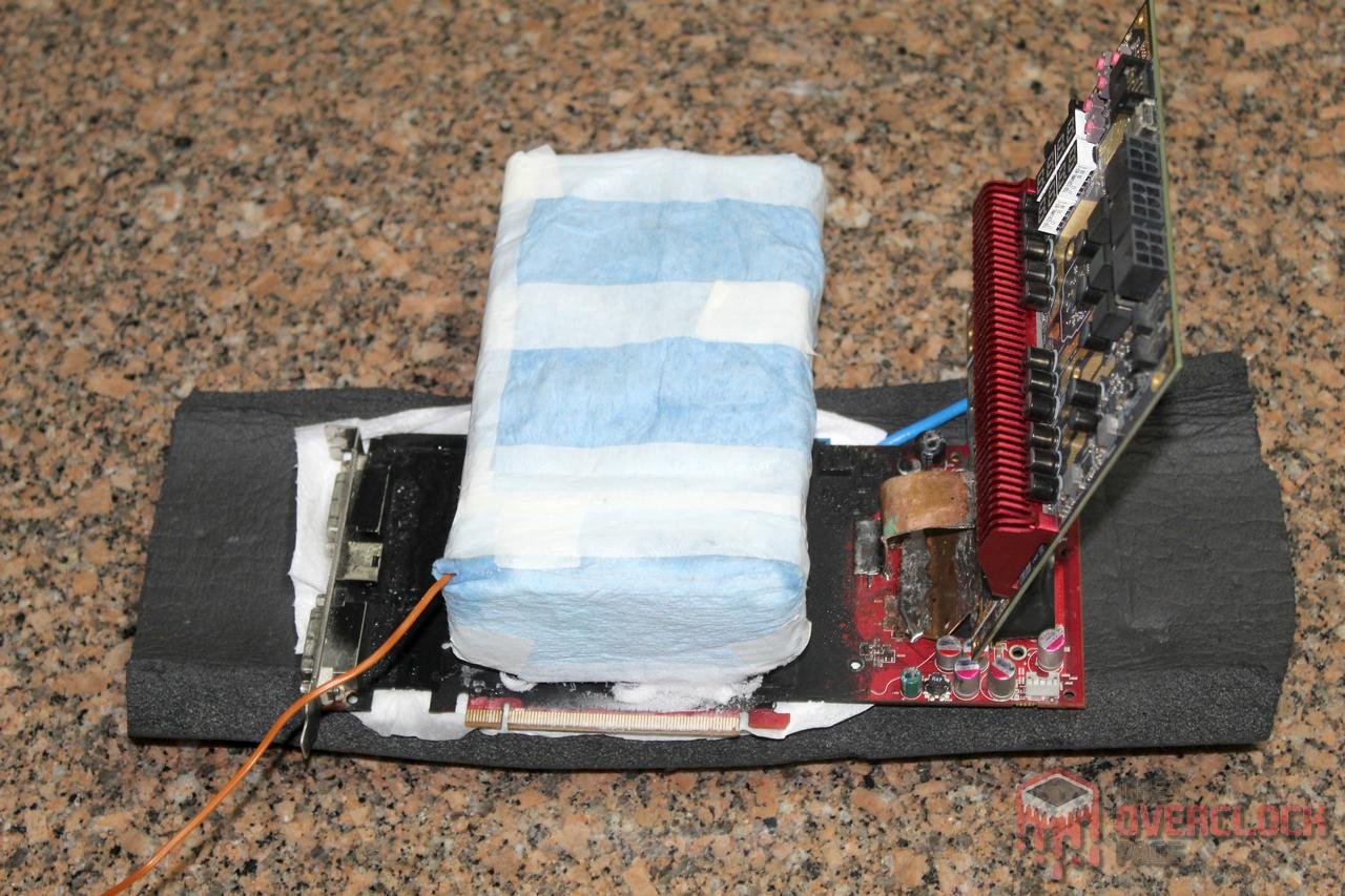Além dessa modificação, a placa também teve a pasta térmica do X58 e thermalpads do VRM substituídos, além de ter recebido isolamento com plastidip para a sessão de overclock extremo.