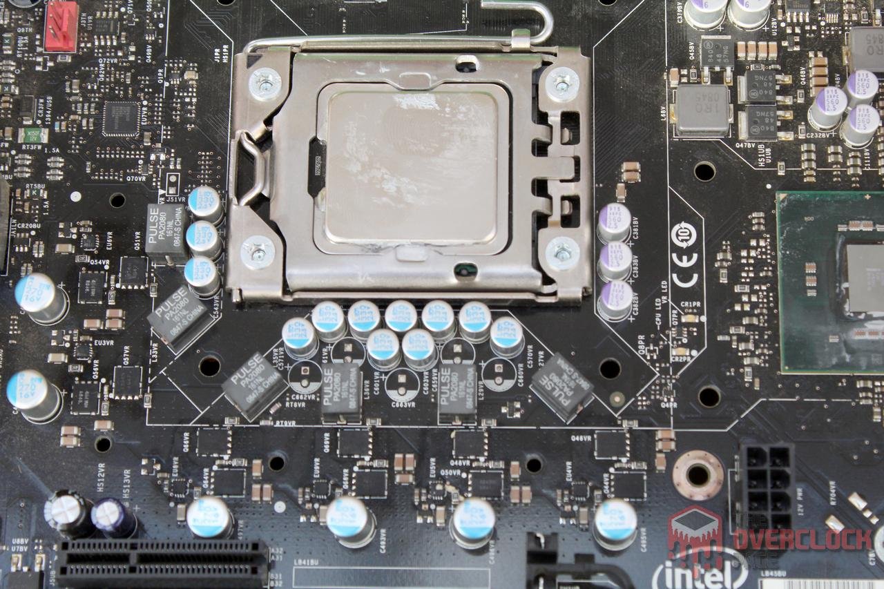 Curiosamente, essa placa possui uma série de “pads” na parte de trás do socket para instalação de capacitores cerâmicos SMD, contudo, vieram expostos e sem nenhum componente soldado e sabendo que quanto mais próximo da carga os capacitores estiverem, menor deve ser o ripple na tensão de saída, tratei de soldar dois SP-CAPs de 470uF ali, o que não é o ideal como seria com os cerâmicos, porém, certamente são melhores que nada e em tese eles devem ajudar na estabilidade do overclock em cenários mais extremos.