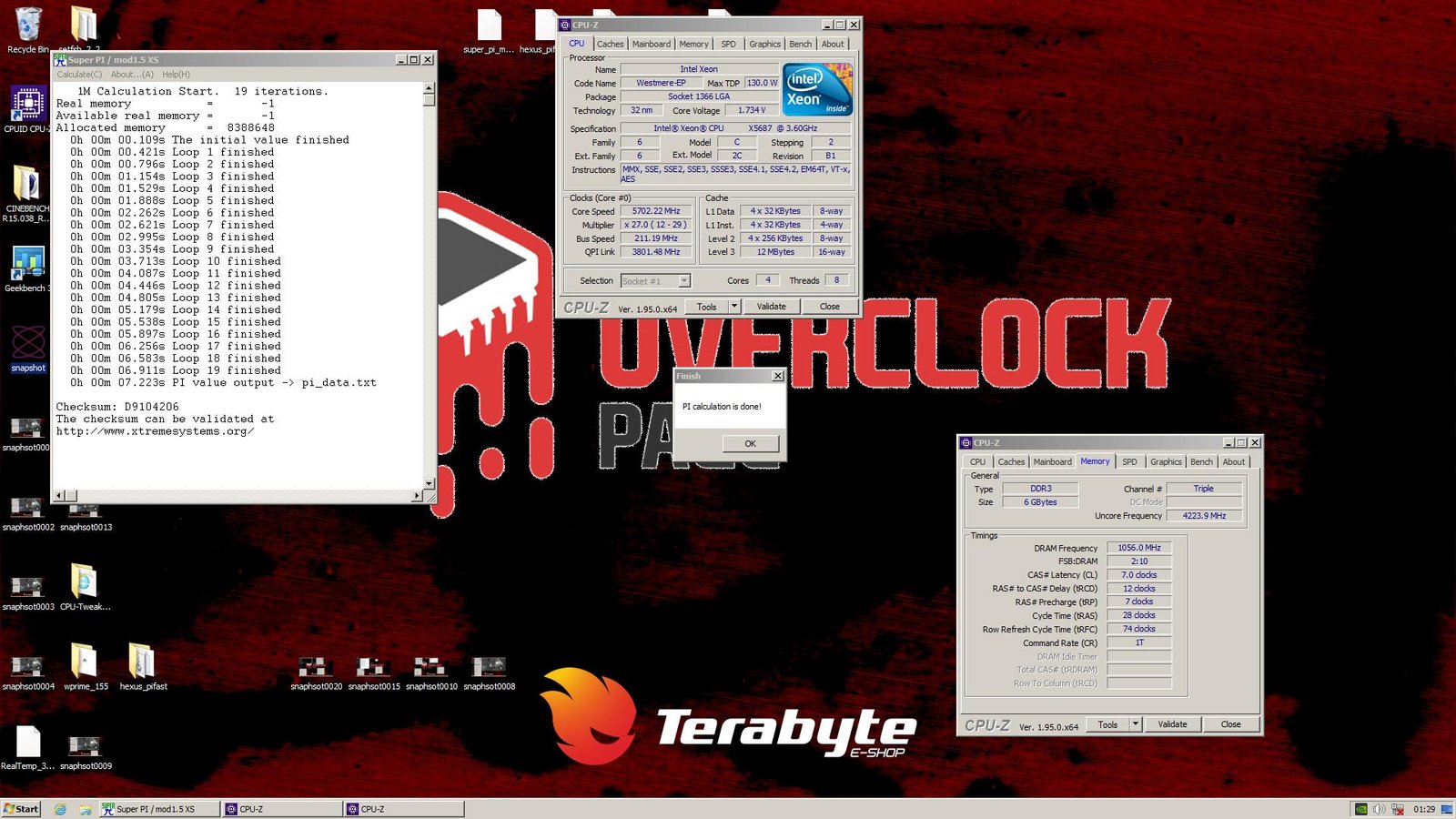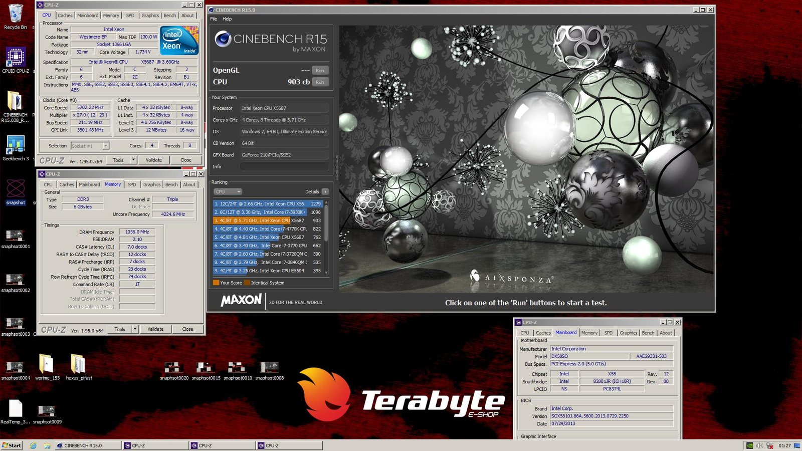 A respeito dos resultados obtidos na livestream, foi possível completar o Cinebench R15 e outros benchmarks clássicos com frequência de 5.7GHz com cerca de 1.78V no vcore, além das memórias G.Skill PIS 2200CL7, rodando a 2112MHz 7-12-7-28, o que se tratando de LGA1366 é uma marca respeitável.