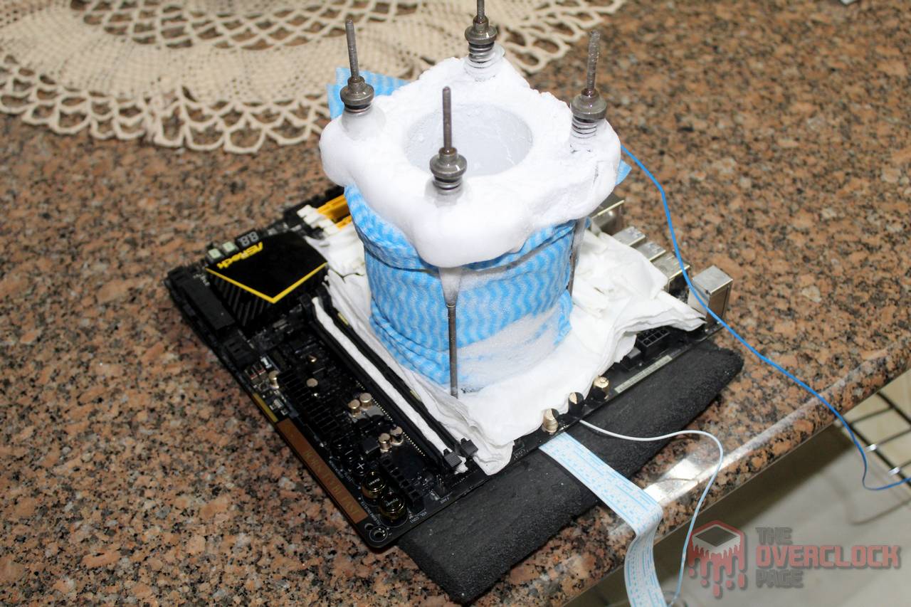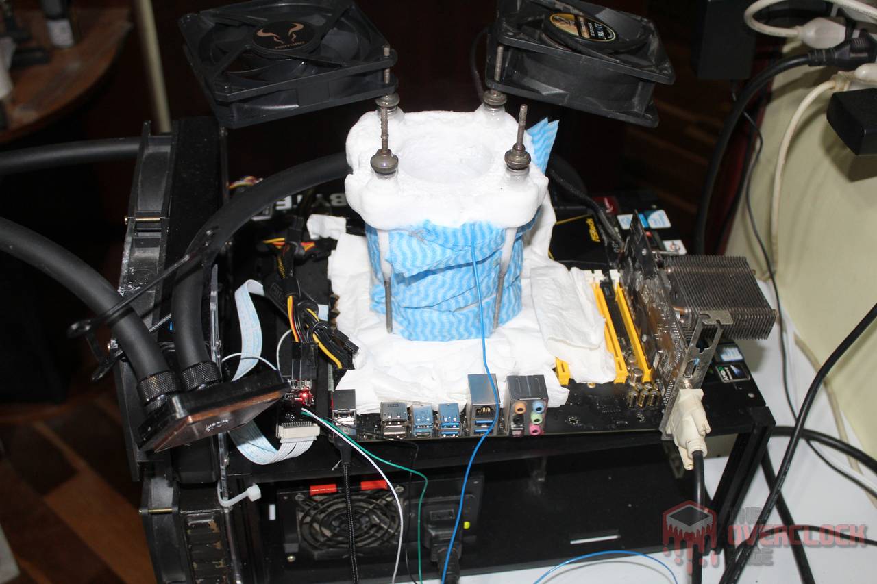 Por fim, a tradicional galeria de fotos da bancada congelada, notem que a umidade na placa-mãe e memórias é virtualmente inexistente, algo que seria praticamente impossível de se obter sem o H.O.T, ou seja, ele realmente cumpre com o prometido! 😀