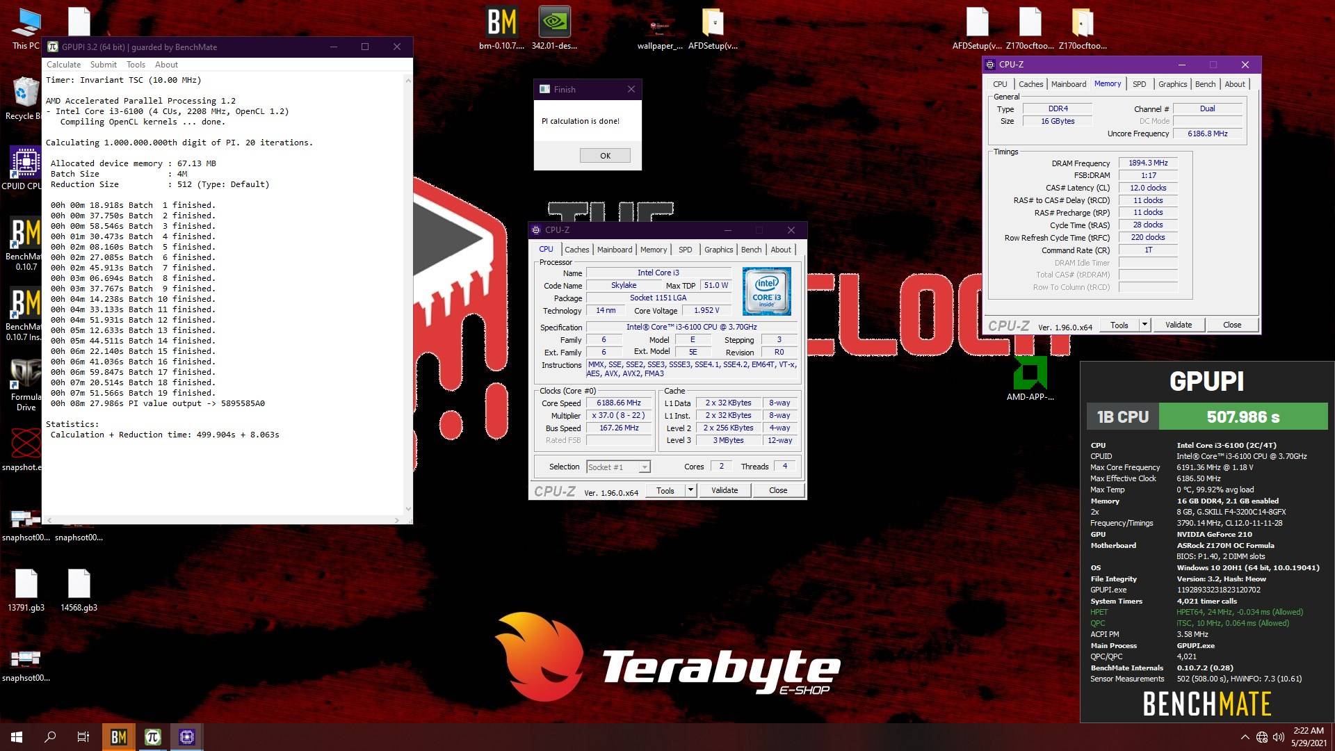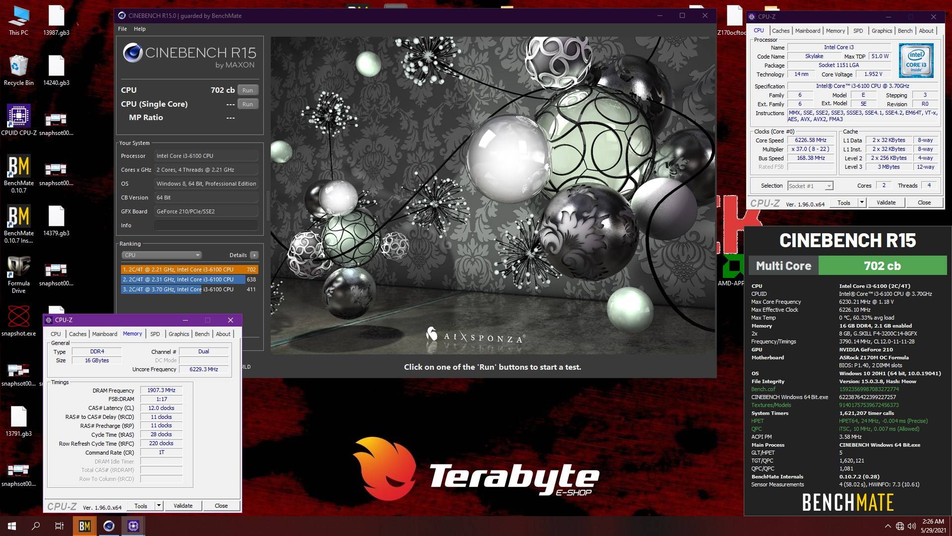 A sessão de overclock extremo transcorreu bem, com o i3 6100 trabalhando tranquilamente sem apresentar CB após os devidos ajustes, de maneira que ele foi capaz de completar os benchmarks com frequências ali na casa dos 6200MHz e 6250MHz com cerca de 1.9V e obter boas pontuações em sua categoria no HWBOT, chegando ficar no segundo lugar no ranking do Cinebench R15.