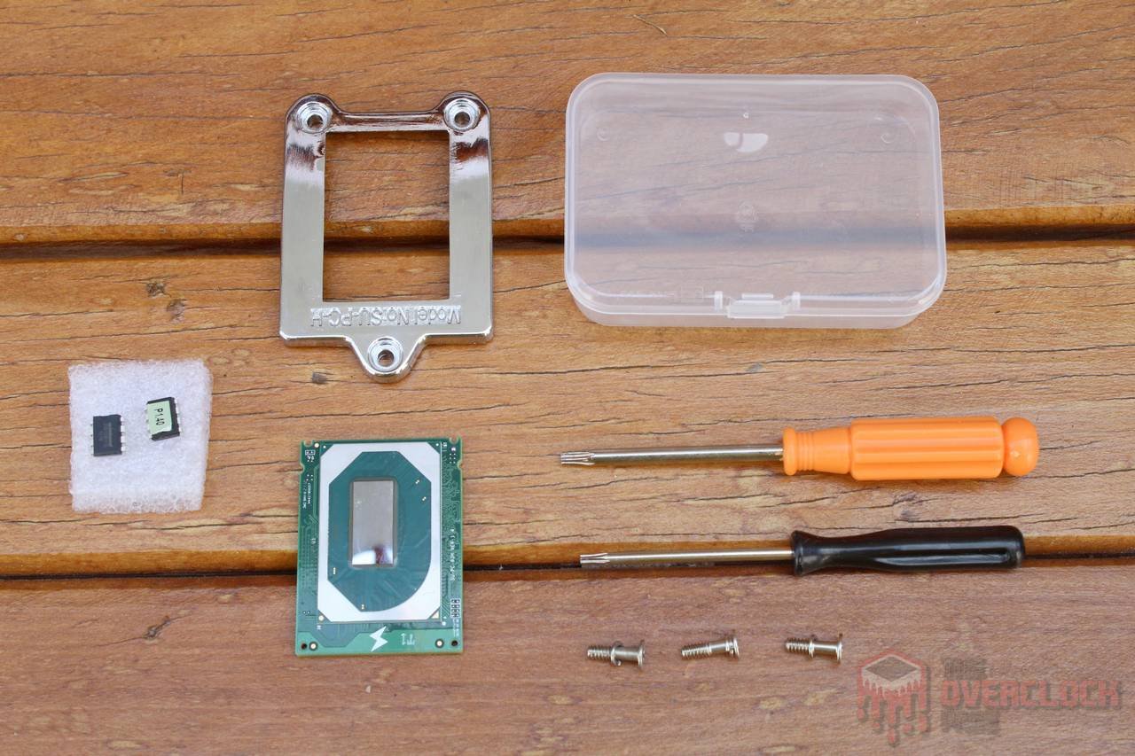 Por ser uma adaptação usando amostras de engenharia de processadores mobile, então, receber algo desse tipo em uma caixinha oficial da Intel definitivamente não é uma possibilidade, porém, ainda sim, a CPU vem bem acomodada dentro de uma pequena caixa plástica junto aos acessórios, no caso, um suporte metálico, parafusos com as respectivas chaves e dois chips de memória flash já gravados com a BIOS necessária, bastando informar ao vendedor o modelo da sua placa-mãe, mas se os chips de bios forem soldados, não tem problema, pois ele também envia o arquivo via e-mail. 🙂