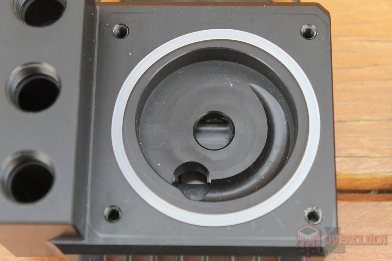 Ao soltar os quatro parafusos da parte de cima, a bomba pode ser removida do bloco, notem as aletas no topo do bloco, as bombas DDC, especialmente quando operando com rotação mais elevada, costumam dissipar uma quantidade razoável de calor, por esse motivo, o fabricante tratou de incluir esse “top” aletado.