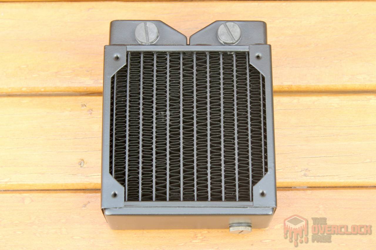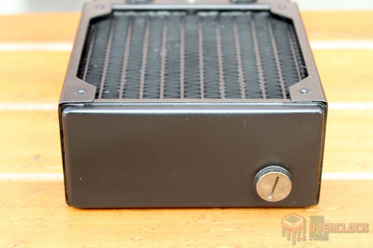 O radiador escolhido também foi um modelo da Barrow, o chamado Dabel-60A 120, que como o próprio nome sugere, trata-se de um modelo de 120 mm com largura de 60 mm, portanto, é desses modelos “gordinhos” que em tese oferecem mais superfície que os “slim”, porém, para eles de fato brilharem, é necessário ou usar uma ventoinha mais forte com maior pressão estática, ou uma configuração “push-pull”, no caso, ele foi escolhido por conta de que na época, também estar pensando em blocar a GPU, algo que acabou não acontecendo e também por esse ser o maior radiador possível de se montar no interior desse gabinete.