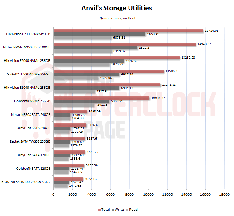 Em outras palavras, se o seu uso para o PC for algo como navegar na internet, ouvir música ou mesmo jogar, deve-se prestar muita atenção nos resultados de leituras/escritas aleatórias até 16 KB, pois essa é a operação que você mais utiliza, portanto, com maior impacto no “uso real”.