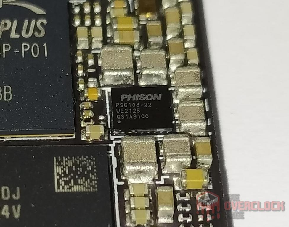 Assim como qualquer componente eletrônico que exerce algum funcionamento, SSDs também possuem um nível de consumo de energia que pode variar desde poucos miliwatts até próximo de 10 watts, beirando o limite de alguns conectores ou slots. O circuito responsável por todo gerenciamento de energia é o PMIC, que significa “Power Management IC“, um chip responsável por prover alimentação para demais componentes. Neste caso, vemos que o responsável neste SSD é o “PS6108-22“, que embora deva simbolizar “Phison“, é uma remarcação de algum outro C.I. que eu acredito ser algum Texas Instruments.