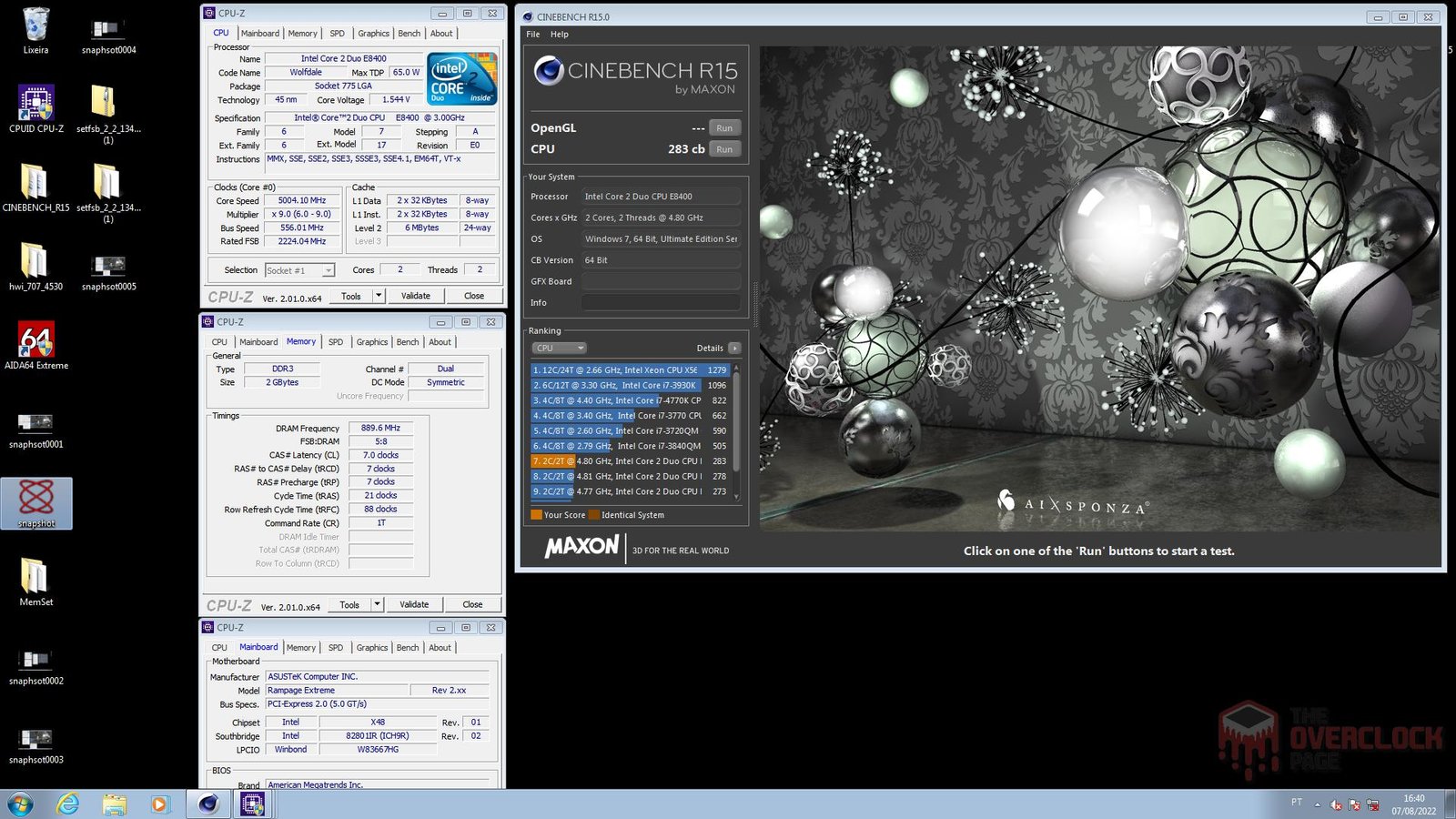 Sobre os resultados obtidos, o E8400 completou vários benchmarks a 5 GHz na água com os “pés nas costas”, obtendo números bastante expressivos para um “dual core” antigo como esse, o que, novamente, deixa claro o porque muita gente até hoje guarda certo carinho por essa plataforma e pelos lendários “Core 2 Duo”. Novamente, fica aqui o agradecimento ao Kona64, pois essa série não teria saído do papel se não fosse por ele.