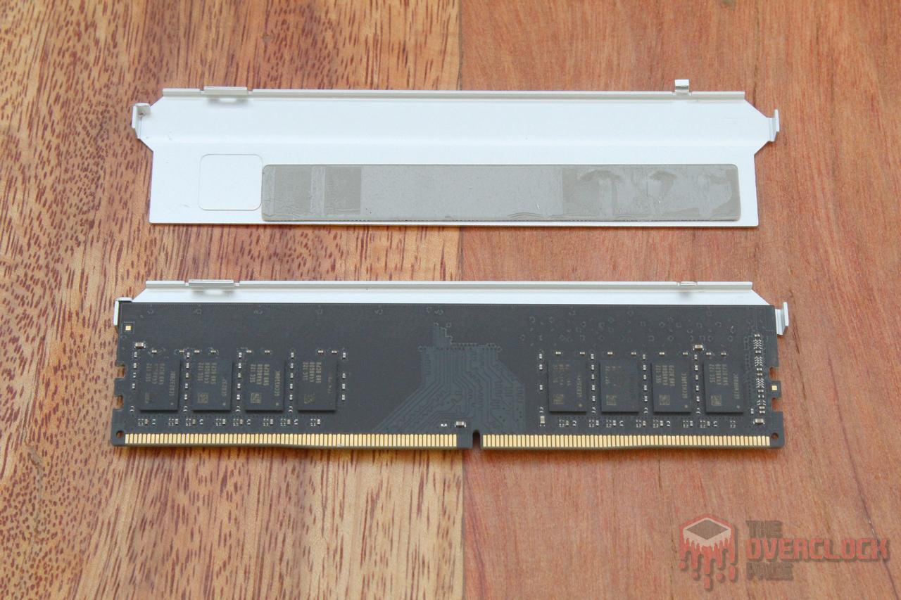Ao remover o dissipador, o que felizmente acabou sendo uma tarefa bastante simples, é possível ver que ele não faz contato com dois dos chips, usando uma interface térmica mais curta por conta da ilustração da runa no dissipador ser em relevo, o que definitivamente não é o ideal, apesar das memórias DDR4 em geral trabalharem bem mesmo sem dissipador