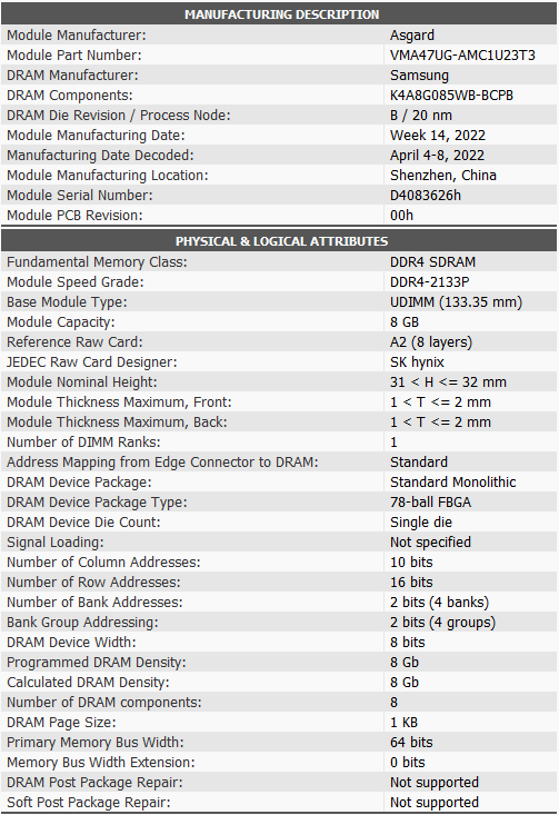 A respeito dos chips, a Asgard optou por utilizar Samsung B-Die, o que já era de esperar tomando por base as suas especificações de fábrica, afinal, não existe outro chip DDR4 capaz de trabalhar com esses parâmetros.