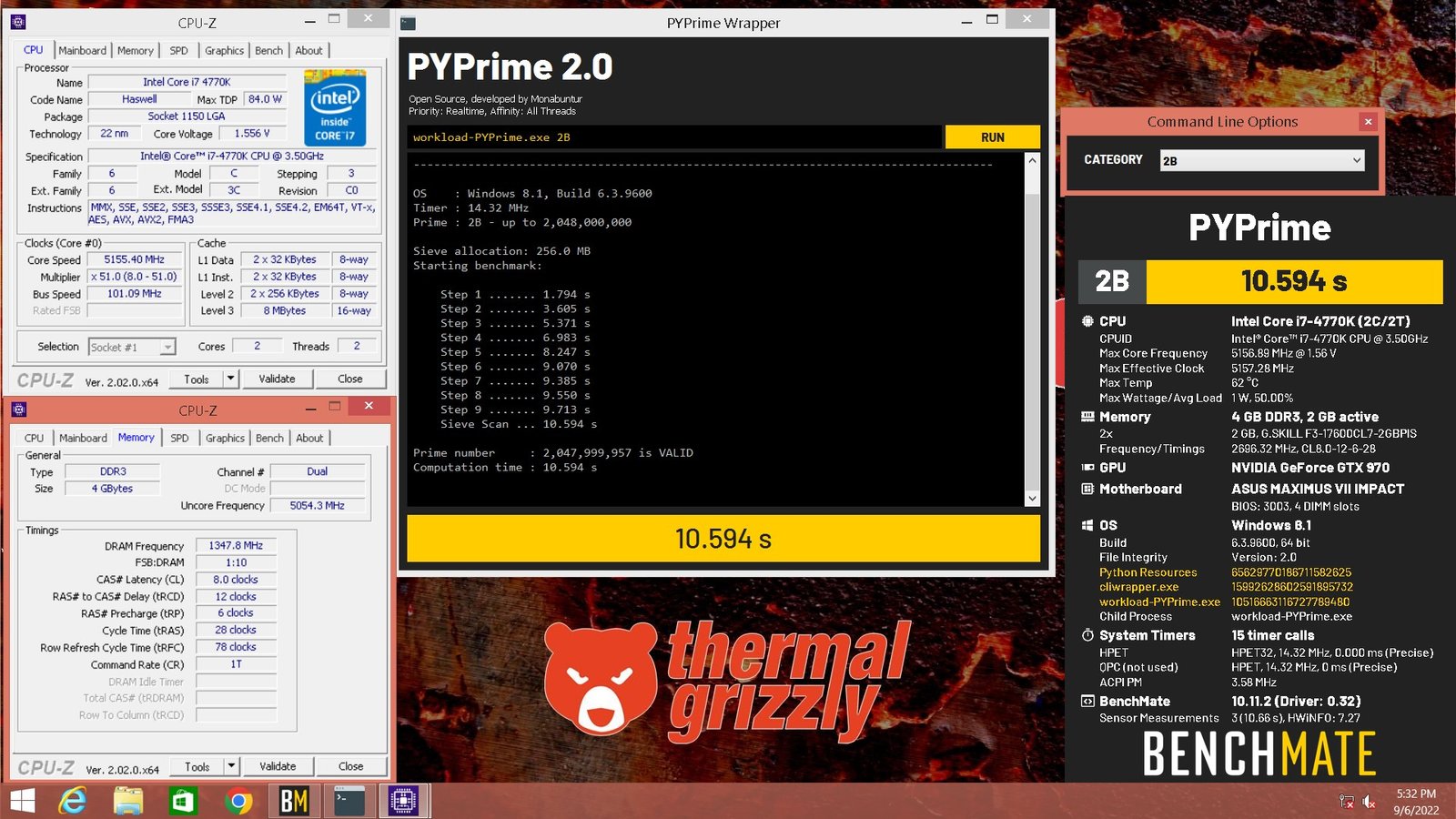 Se alguém ainda acha que a vida da “engenhoca” vai ser fácil, está redondamente enganado! Para o primeiro teste, o objetivo foi claro: Pegar o primeiro lugar no ranking do PYPrime 2B com memória DDR3, onde para isso, foi utilizado um i7 4770K, uma Maximus VII Impact e um kit de memória 2×2 GB G.Skill PI 2200 CL7 usando os famosos “Powerchips”, as quais já foram testadas aqui no site.