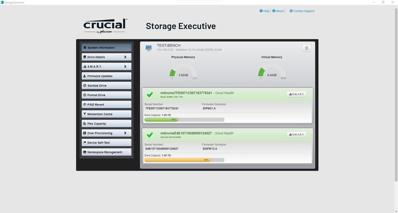 A Crucial também oferece através de uma página de download em seu website, um programa chamado “Crucial Storage Executive”, que oferece diversas opções para gerenciamento e controle de seus produtos, como veremos a seguir.
