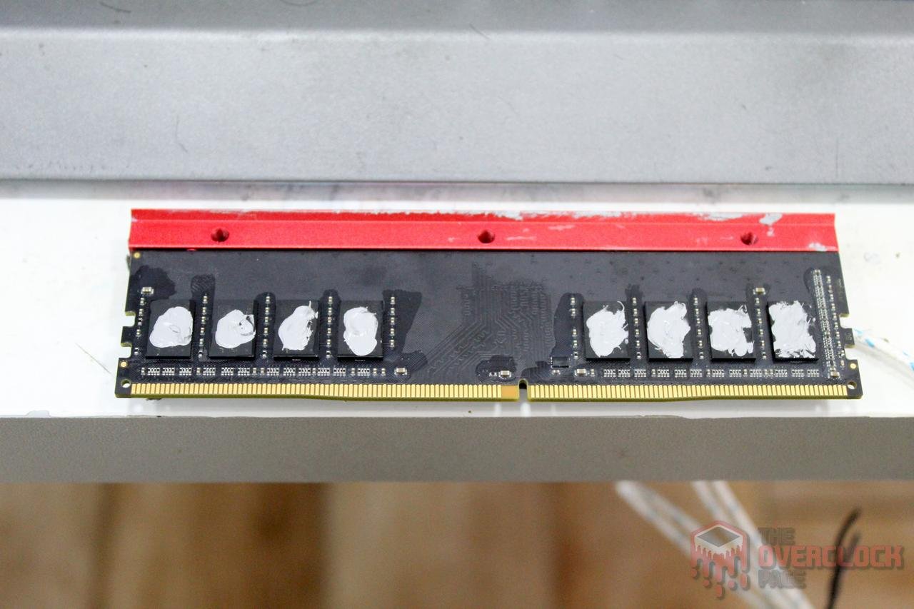 Para isso, o primeiro passo foi preparar a memória, removendo o dissipador e isolando os componentes SMD com esmalte de unha, algo necessário já que a faixa de temperatura obtida pelo V.A.L.C.I.R tende a formar bastante condensação.