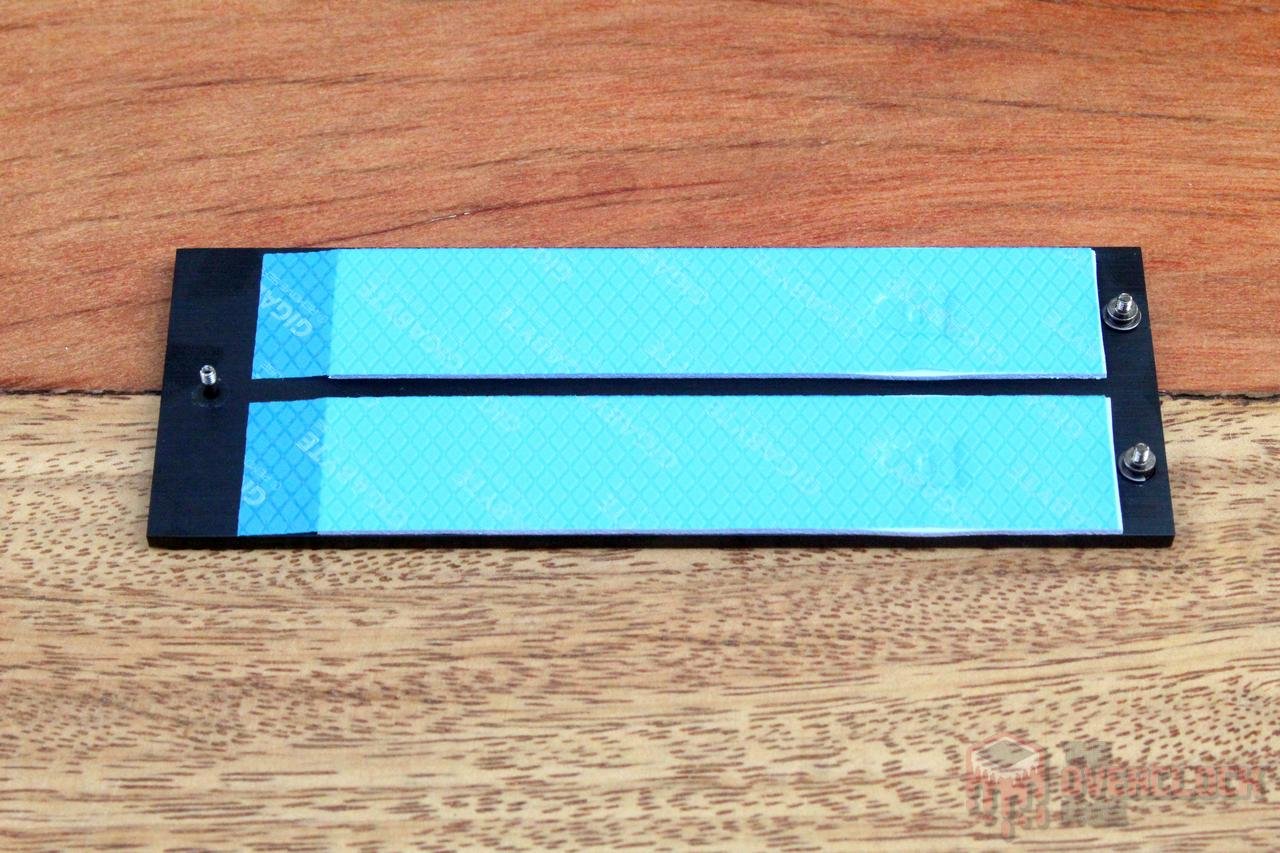 Como foi dito anteriormente, para as M.2, foi usado uma chapa de alumínio sem aletas como dissipador, a qual vem com dois thermalpads que fazem contato diretamente com os SSDs.