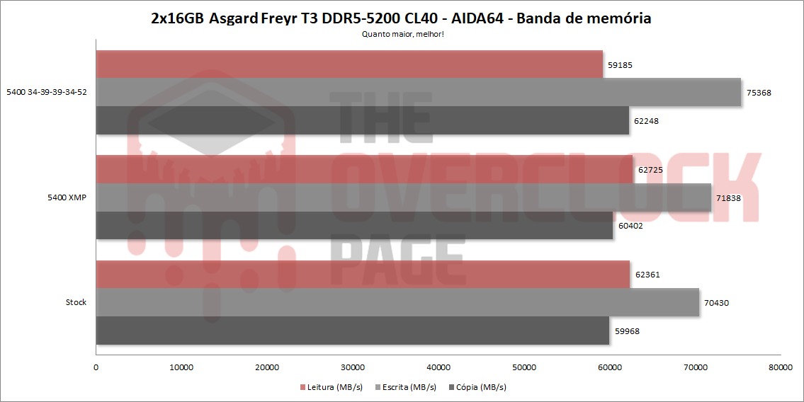 Já com o ajuste manual, foi possível obter os mesmos 5400 MHz, só que com 34-39-39-34-52 e os principais subtimings, leia-se, aqueles que possuem maior impacto no desempenho, mais apertados, o que rendeu mais um pequeno ganho de desempenho em relação ao XMP. Cabe destacar que os limites foram iguais tanto na plataforma AMD quanto na Intel