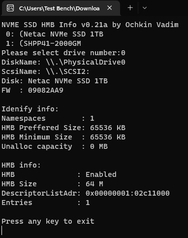 Como havíamos mencionado, por se tratar de um controlador TC2200, ele não oferece suporte a DRAM Cache, portanto, para realizar o armazenamento da tabela de metadados, ele aloca 64 MiB da memória RAM do sistema para agilizar o acesso a esta tabela.
