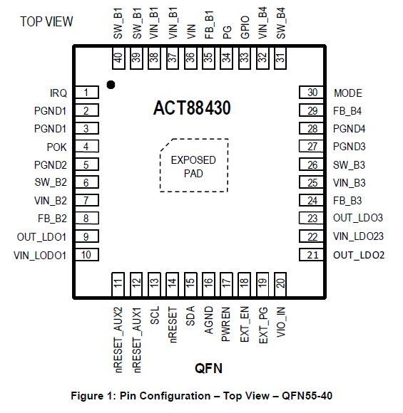 Ele trabalha suporta trabalhar com tensões de 2.7V até 5.5V, oferecendo suporte até 4A (DC/DC Step-down), possuindo uma frequência de comutação de 2.25 MHz ou 1.125 MHz. E possui um package de 5 x 5 mm com 40 pinos como observamos na imagem acima.