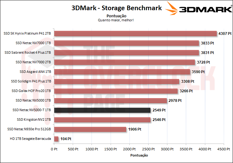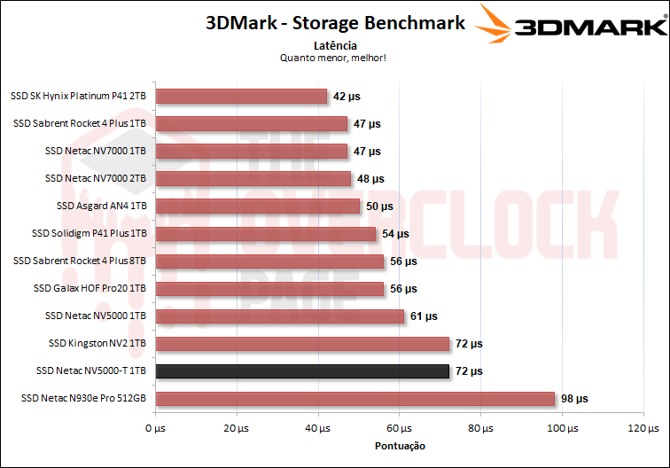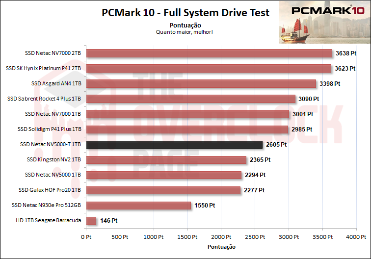 Vemos que neste benchmark com traces mais realistas e tradicionais de uso cotidiano, o novo NV5000-T teve um desempenho idêntico ao Kingston NV2, que analisamos recentemente, mas novamente, ele acabou se saindo pior que o NV5000.