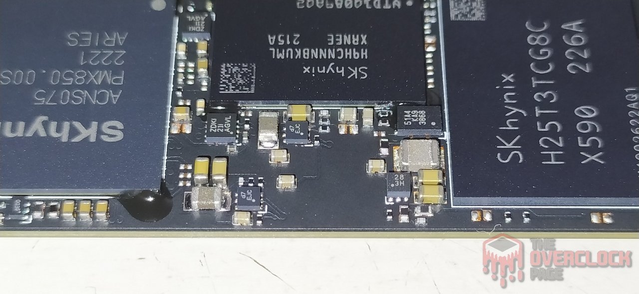 Outro detalhe interessante é que a SK Hynix, embora divulgue estas NANDs como 1600 MT/s e eles estejam operando nestas velocidades, ela decidiu diminuir a velocidade nativa de gravação TLC para diminuir consumo elétrico e térmico, tendo em vista que o SSD já esquenta muito, podendo consumir até ~8.25W com corrente de 2.5A e tensão de 3.3V, mas, na prática, não chegando nem perto disso.