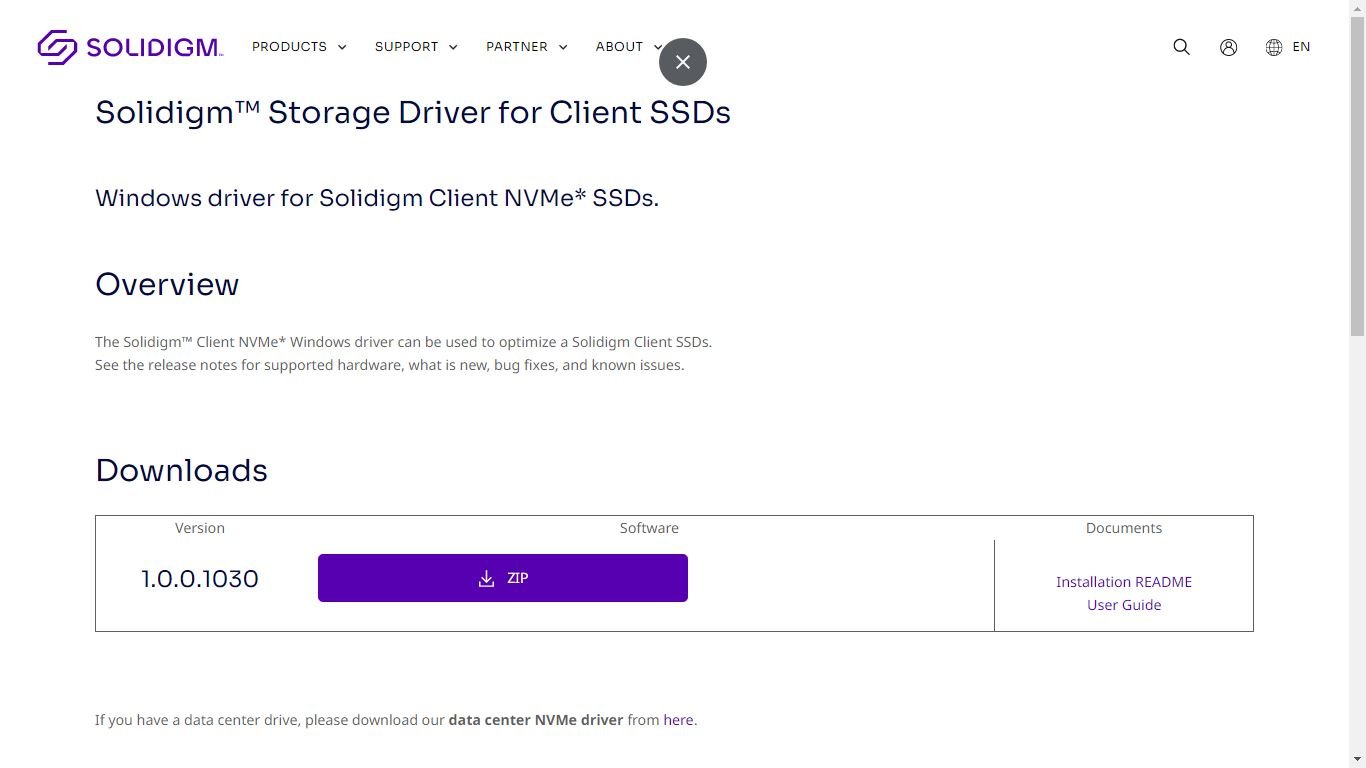 Após determinamos exatamente o uso do SSD, que neste artigo seria para simular um cenário convencional, nos dirigimos para a aba “ Soldigim Storage Driver For Client SSDs” e baixamos o arquivo em extensão zip.