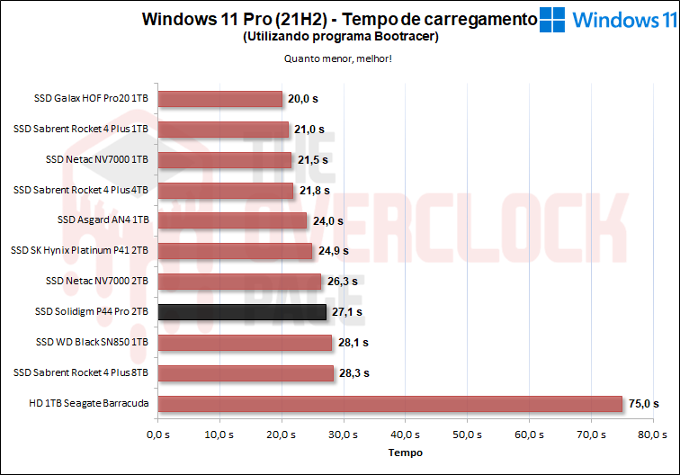 Considerando que, neste programa, consta deste o tempo de boot até o carregamento dos últimos drivers do OS, o que neste caso, é feito uma instalação limpa com apenas drivers de sistema operacional, como de Rede, Wireless + Bluetooth, Áudio, Drivers Nvidia, PCH dentre outros, então, vemos que o foi um pouco mais lento para iniciar o sistema, mas nada que vá impactar no uso cotidiano.