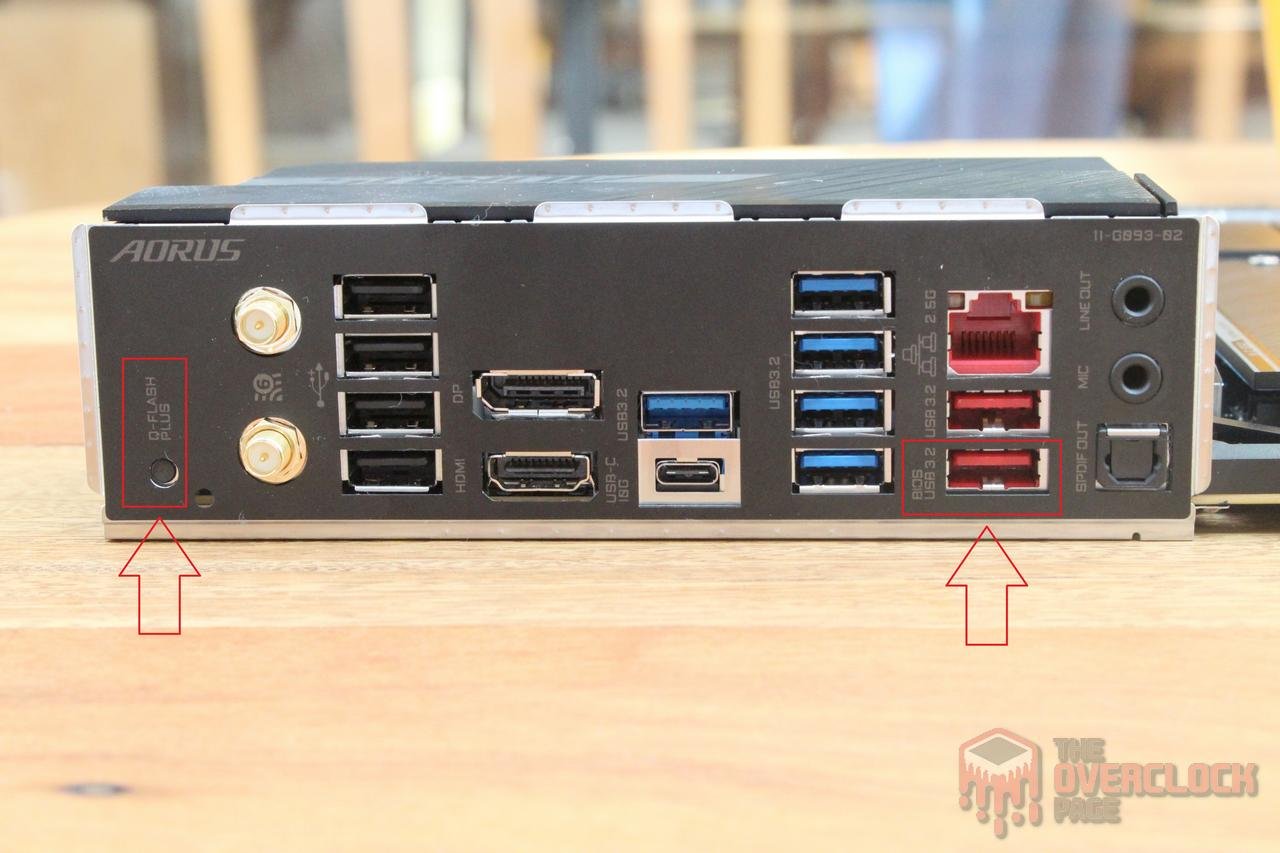 Feito isso, basta inserir o pendrive na USB correta, no caso dessa placa em específico, trata-se da segunda USB vermelha abaixo do conector RJ45 LAN, onde essa é uma informação que consta no manual da placa-mãe, caso você esteja usando um modelo diferente. O próximo passo é apertar o botão do Q-Flash, que se tudo correr bem, você verá um led piscando, primeiro um pouco mais rápido e depois lentamente.