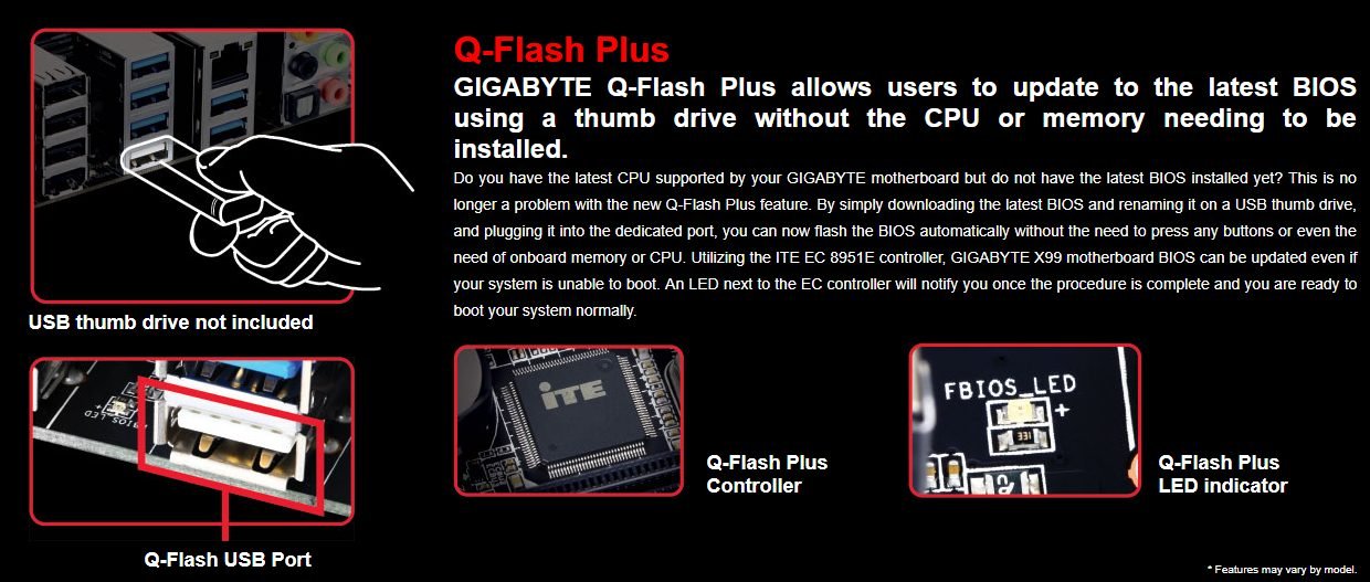O tal recurso permite ao usuário atualizar a BIOS da placa por meio de um pendrive USB e um botão no espelho traseiro, tudo isso sem precisar ter uma CPU ou memórias instaladas! Se isso não parece novidade, é porque não é! Placas-mãe topo de linha tanto da própria GIGABYTE quanto de outros fabricantes já integram recurso semelhante a mais de 10 anos, onde, finalmente, a AMD tomou a iniciativa de incluí-lo nativamente na plataforma AM5, trazendo a funcionalidade para os modelos mais simples.