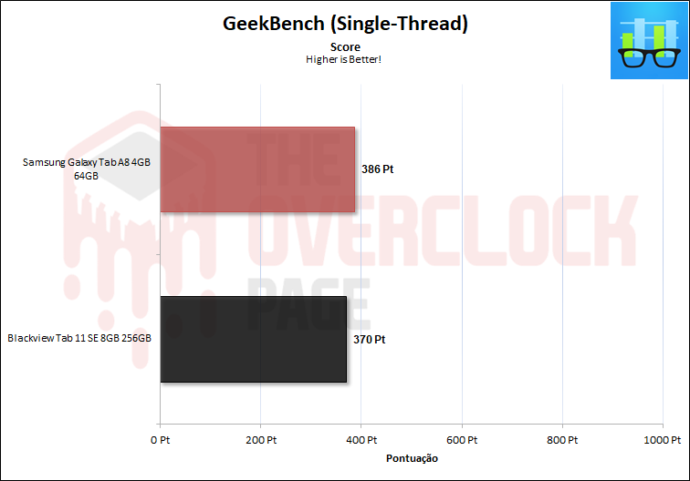 Neste teste, ele apresentou um resultado meio baixo, porém, muito próximo de resultados de tablets como o Nokia T10 que usam o mesmo SoC, só que com 3GB de RAM e 32GB de armazenamento. Ele ficou a frente de tablets como Xiaomi Mi Pad 4 Plus com SoC Snapdragon 660, que era o concorrente direto deste SoC T606, mas perdeu para seu concorrente aqui no Brasil, o Samsung Galaxy Tab A8 que encontramos por um preço pouco maior.