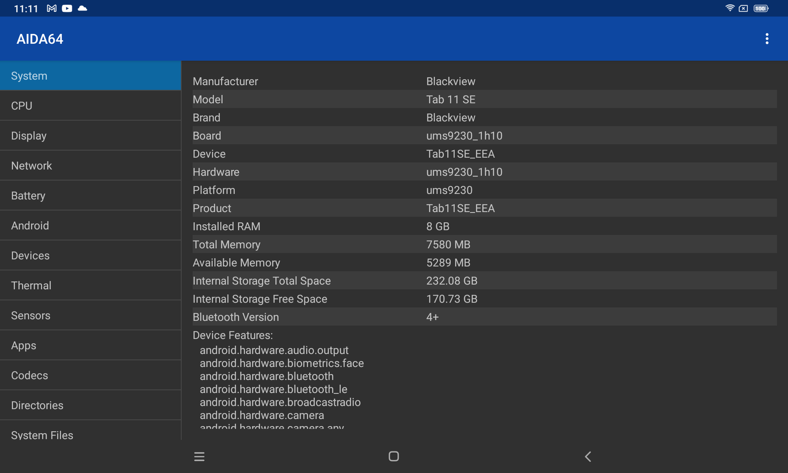 Neste tablet, a Blackview utiliza o CPU/Chipset UniSoC Tiger T606, que é da fabricante chinesa, Unisoc, com sede em Xangai e fundada em 2008, que produz SoCs que equipam dispositivos como Samsung Galaxy A03, dentre outros.