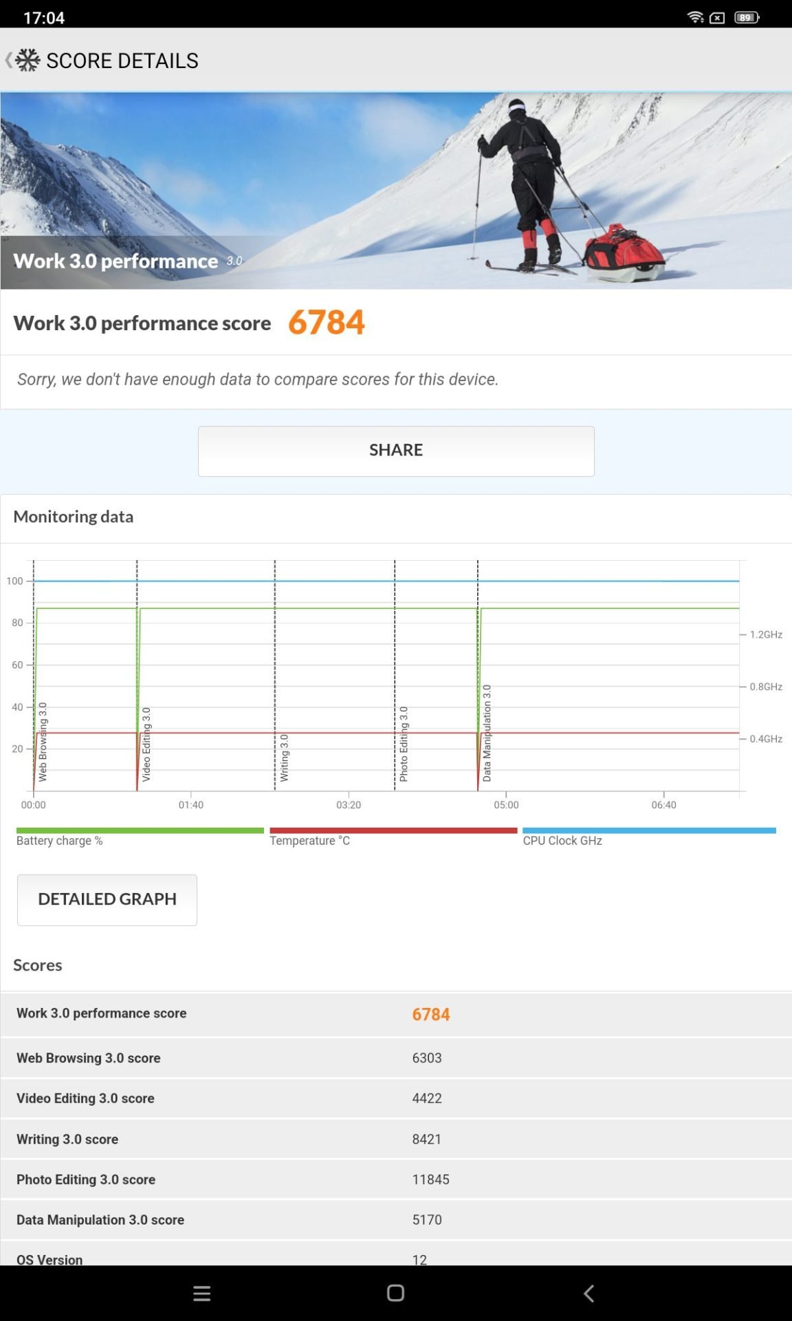 Neste benchmark de produtividade, o Tab 11 SE obteve um desempenho quase que idêntico a um smartphone Xiaomi Redmi Note 8 de 2021 cujo SoC é um Helios G85 com 2 núcleos 2x 2.0 GHz Cortex-A75 + 6x 1.8 GHz Cortex-A55 e uma GPU Mali-G52 MC2. Sem mencionar que é um smartphone intermediário com 4GB de RAM e 64GB ou 128GB de armazenamento. Contudo, novamente, ficou um pouco atrás do Samsung Tab A8.