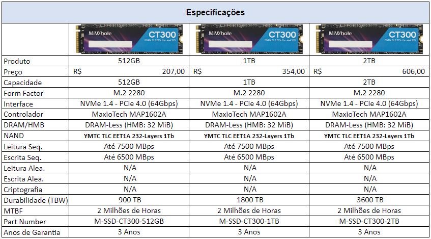 CURIOSIDADES SOBRE O SSD MIWHOLE CT300