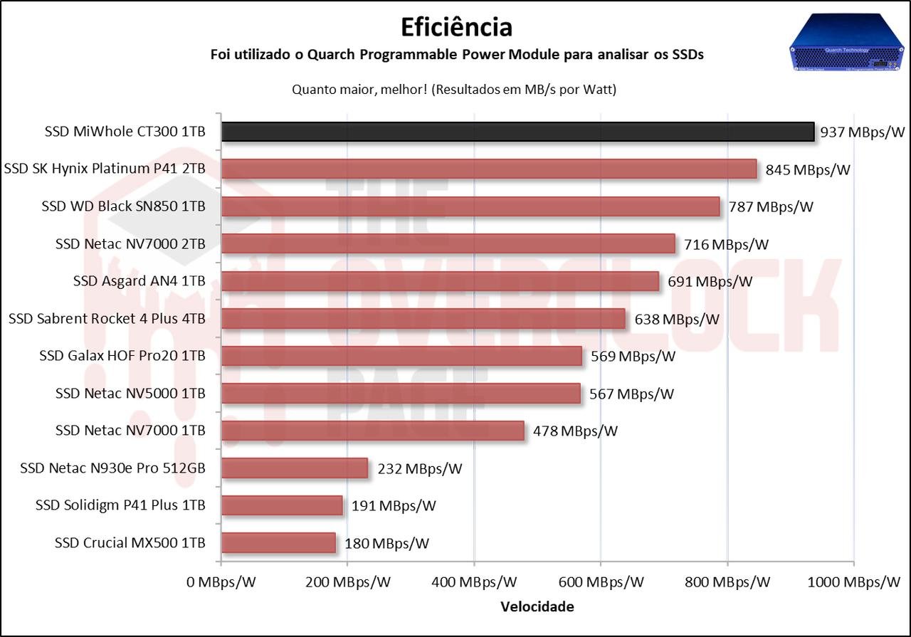 O MiWhole surpreendeu no quesito de desempenho, ainda mais no quesito de eficiência, aonde ele surrou até SSD muito mais caros que ele. Além de ter apresentado um desempenho consistente com outros SSDs com que ele concorre diretamente.