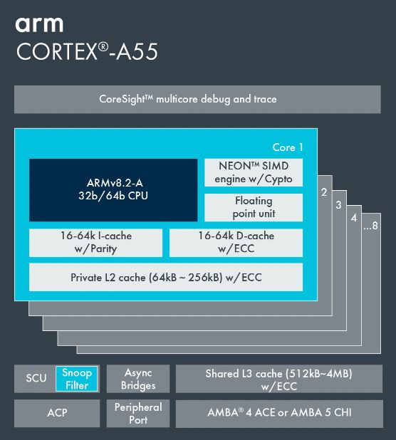 Esse SoC acompanha um conjunto de 8 núcleos com arquitetura ARM 64bits, ARMv8.2-A (A32, A64). O P90 vem com 2 núcleos Cortex-A75 trabalhando a uma frequência de até 2.2GHz, sendo esses núcleos de “alto desempenho” e mais outros 6 núcleos de “eficiência” Cortex-A55 que operam em uma frequência também de 2.0GHz.