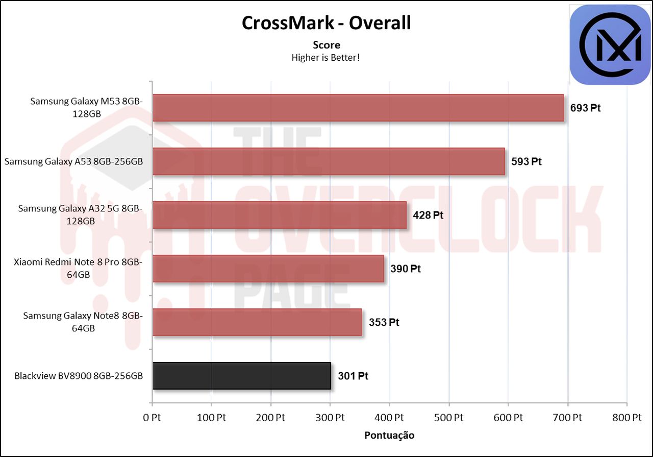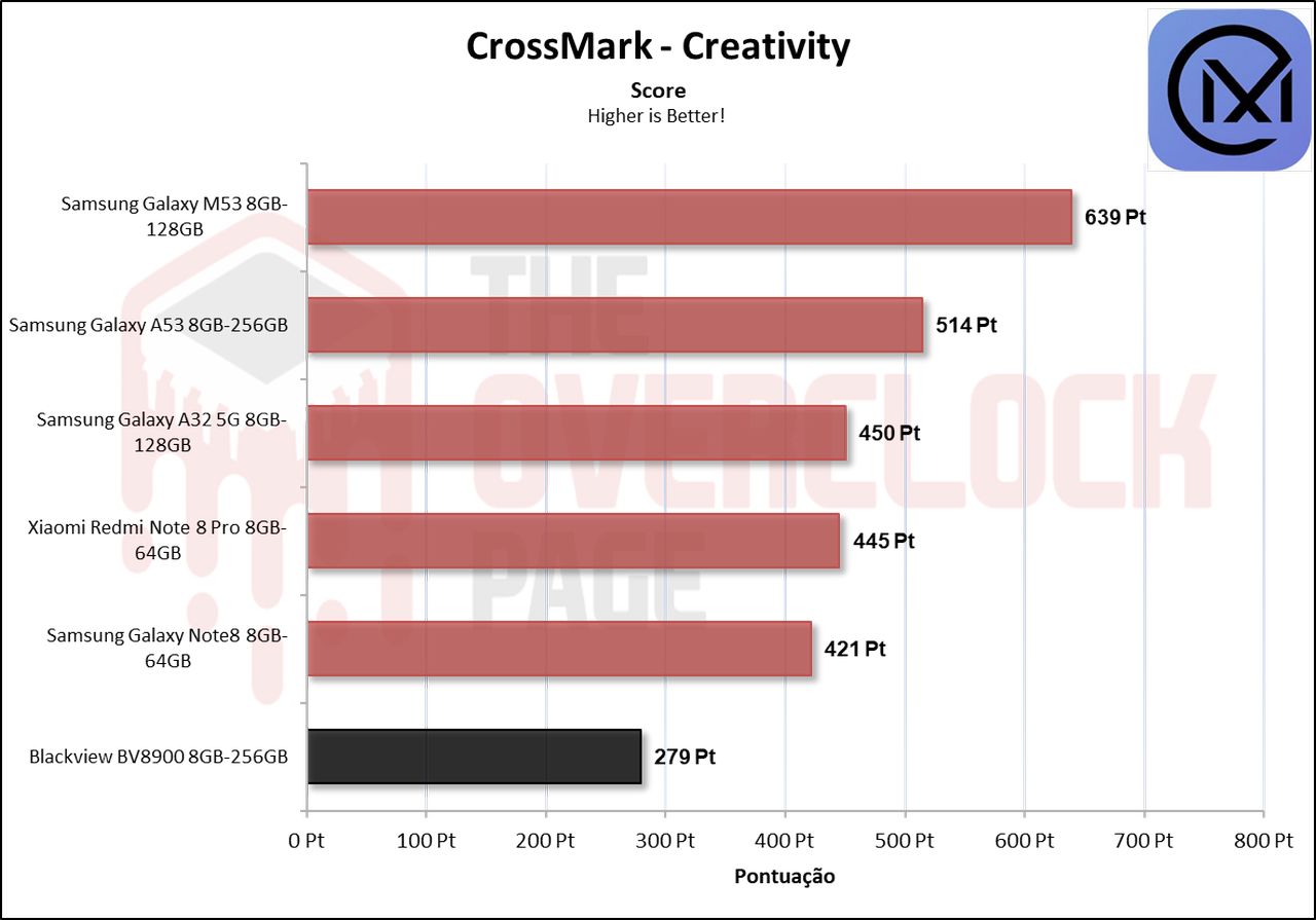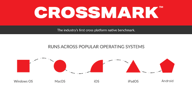 CrossMark® é uma ferramenta de benchmark nativo multiplataforma que mede o desempenho geral do sistema e a capacidade de resposta do sistema usando modelos de aplicativos do mundo real. Neste benchmark são divididos em 3 categorias, produtividade, criatividade e responsividade.