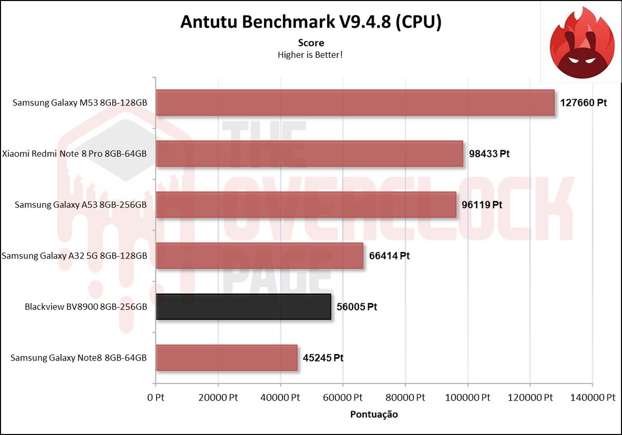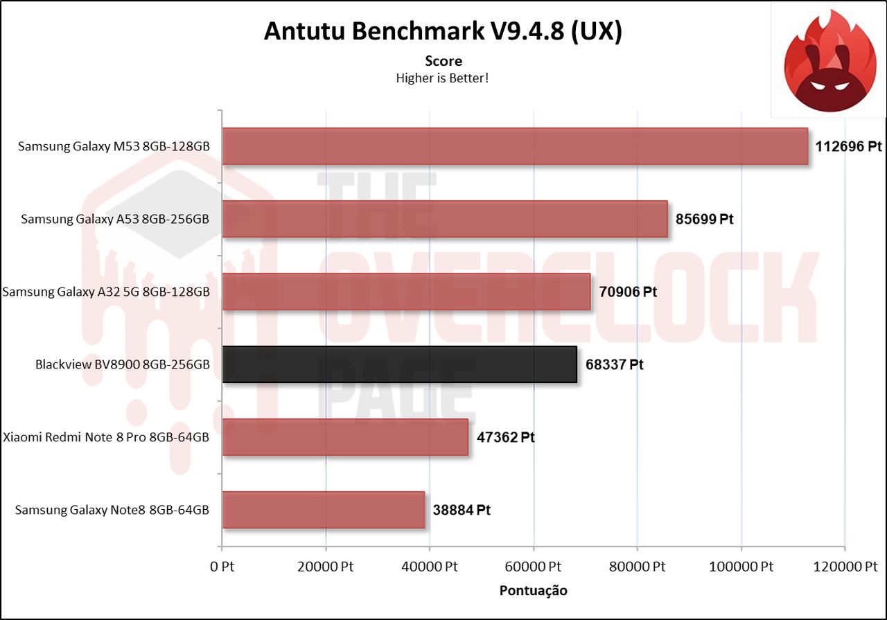 Como podemos observar novamente, ele apresenta bons resultados superando até alguns modelos mais novos da Samsung como o A32, e o Note 8 que é um pouco mais velho. Seu desempenho ficou bem mesmo em atividades que usam bastante memória RAM, devido ele deixar alocar de forma estática seu armazenamento para fazer o SWAP o que também acarretou seu desempenho geral ser maior que o Samsung Note 8 e Redmi Note 8