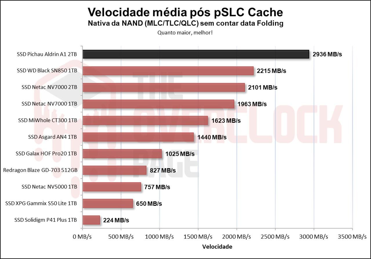 - Velocidade pós SLC Cache imensa, quase 3GB/s