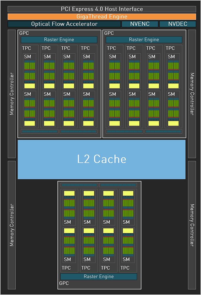 Em termos funcionais, a variante do AD107 utilizada aqui é a AD107-400-KA-A1, que vem com todas as suas unidades funcionais ativadas, o que corresponde a 3072 CUDA Cores, 96 TMUs, 48 ROPs, 96 Tensor Cores, 24 RT Cores e 24 MB de cache L2.