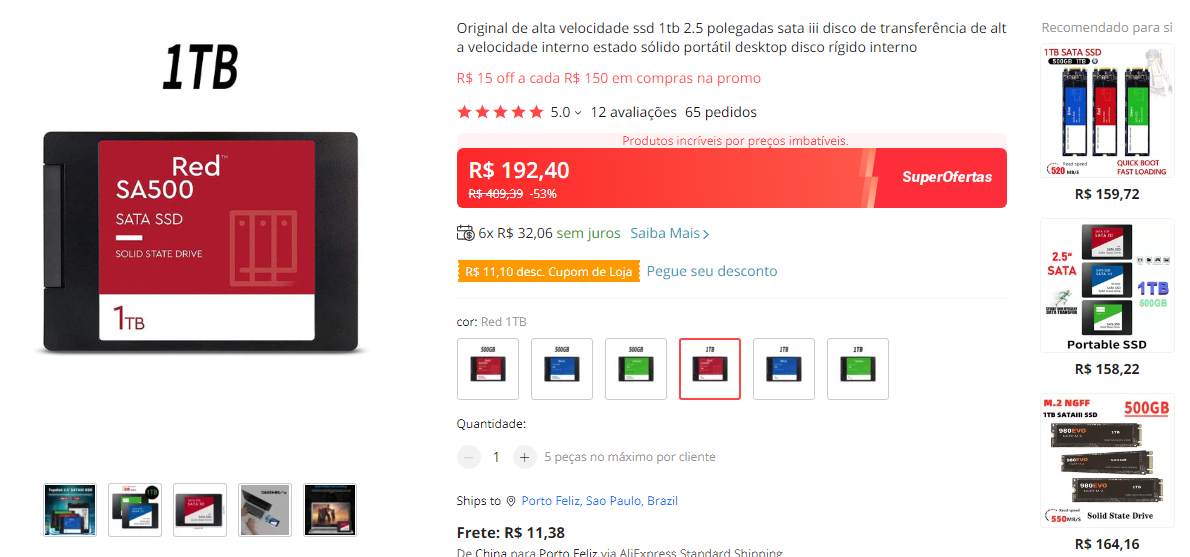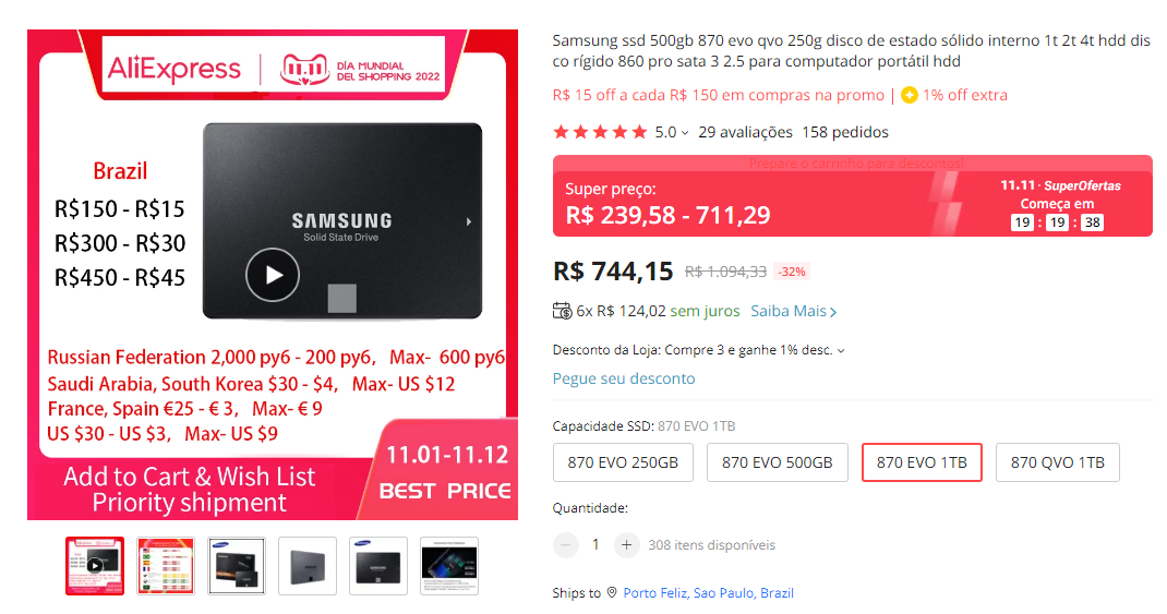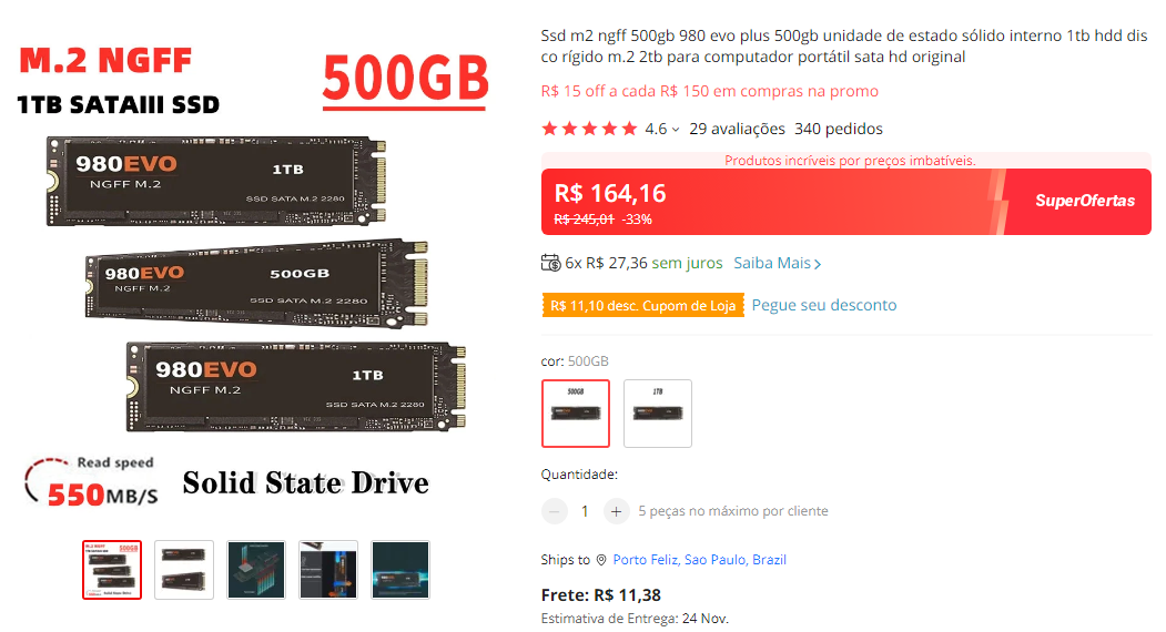 E mesmo que fosse algo real, um SSD SATA Samsung de 1TB por R$165? Como diria aquele ditado, quando a esmola é demais o santo desconfia…..